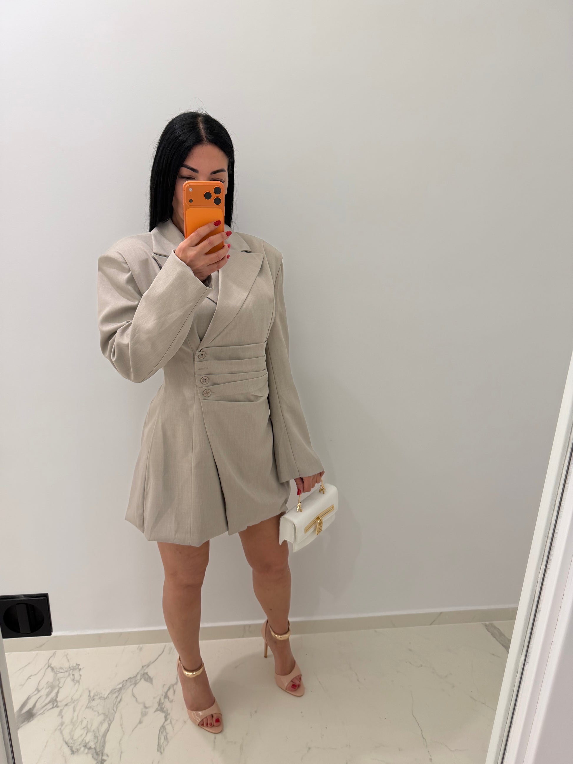 Abito giacca super bellissimo elegante con dettagli bottoni che evidenzia il punto vita retro con cintura regolabile in taglia unica ma vestibilità comoda da tg XS a L