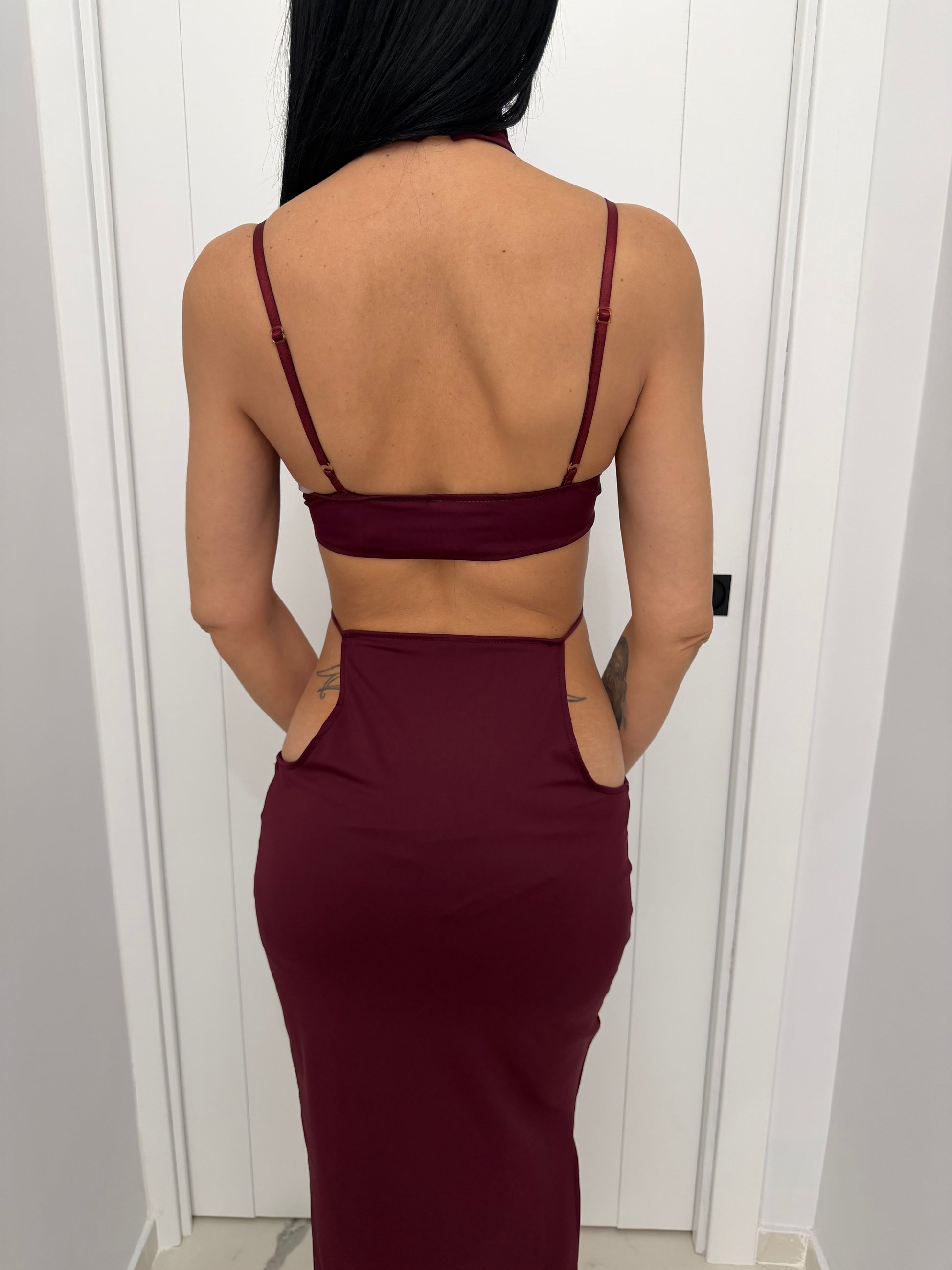 Abito che si distingue dalla sua parte alta strutturata con fascia sottili collegata alla gonna che crea una banda verticale con mini spacco laterale apertura sui fianchi che crea una eleganza unica il tessuto elastico in taglia unica ma vestibilità comoda da tg XS a M