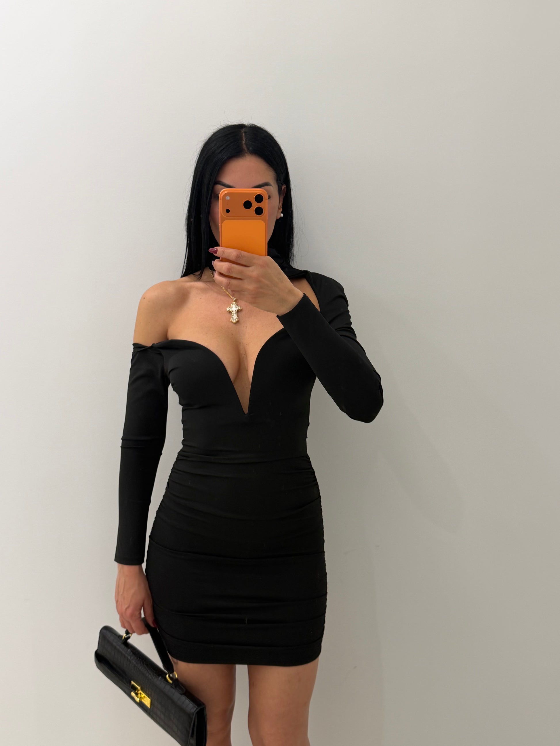Abito stupendo a tubino con scollo profondo con stecche e il suo design cut out per chi ama distinguersi con classe e femminilità tessuto semi elastico e con collettino con due bottoni in taglia unica ma vestibilità comoda da tg XS a L nota bene fino ad una terza di reggiseno