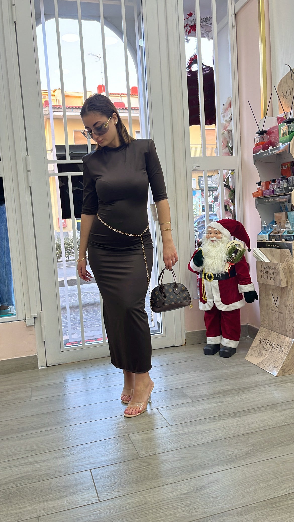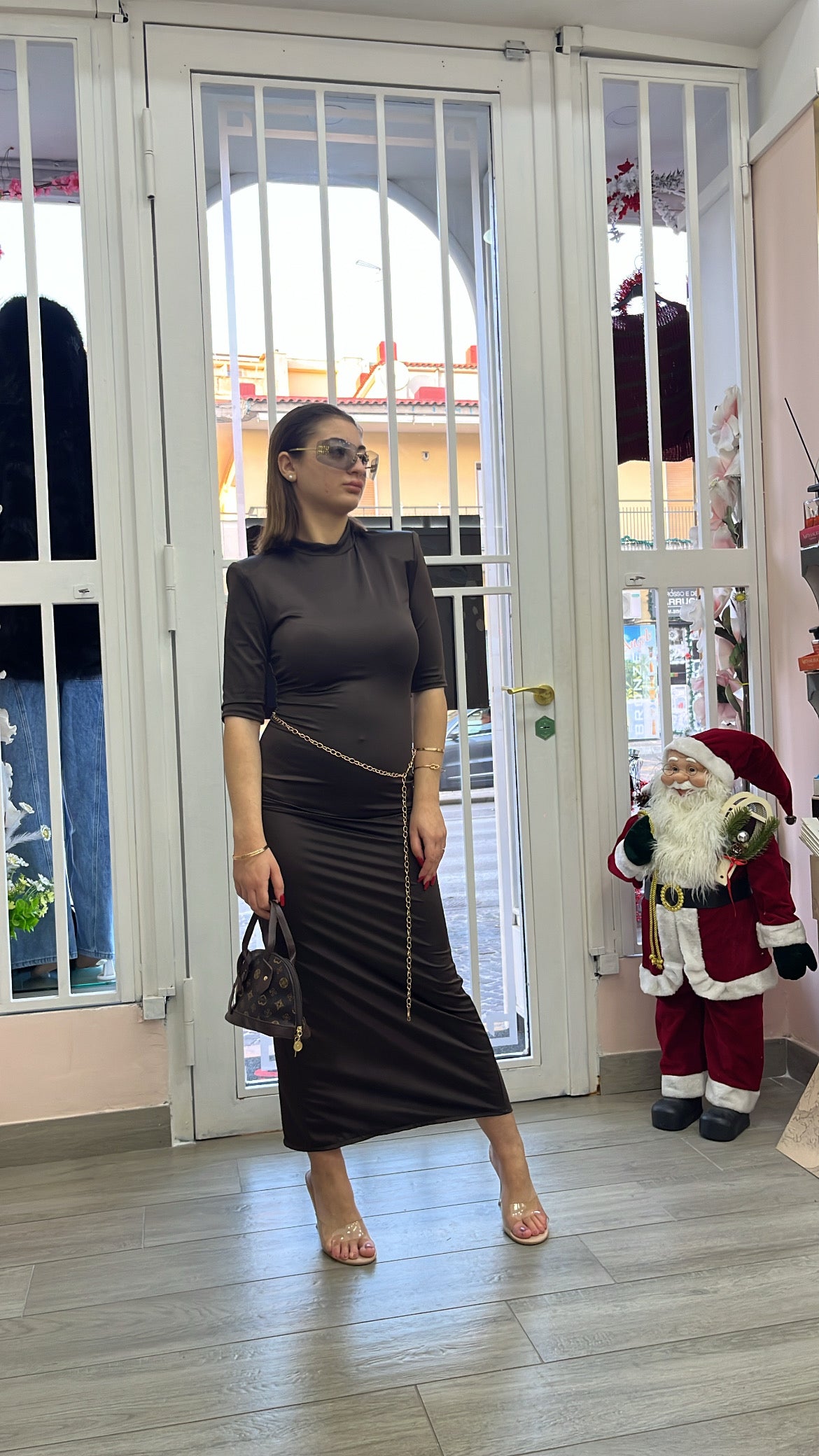 Abito versatile elegante tessuto in lycra con dettagli spalline spacco retro in taglia unica ma vestibilità comoda da tg XS a M