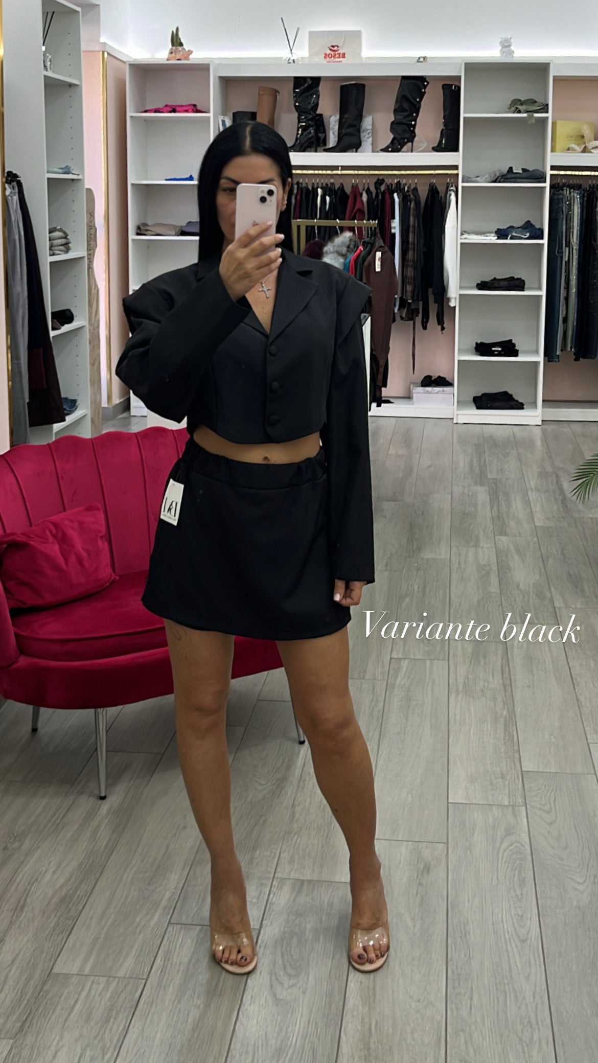 Coordinato con Pantagonna e giacca crop tessuto top consigliato in taglia unica ma vestibilità comoda da tg XS a M
