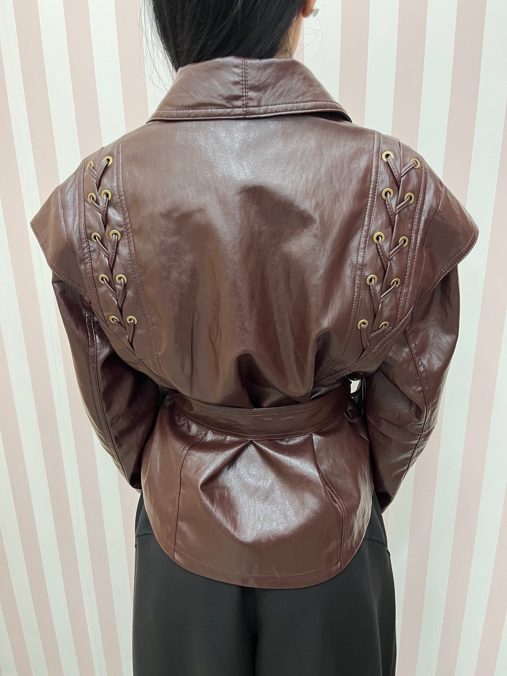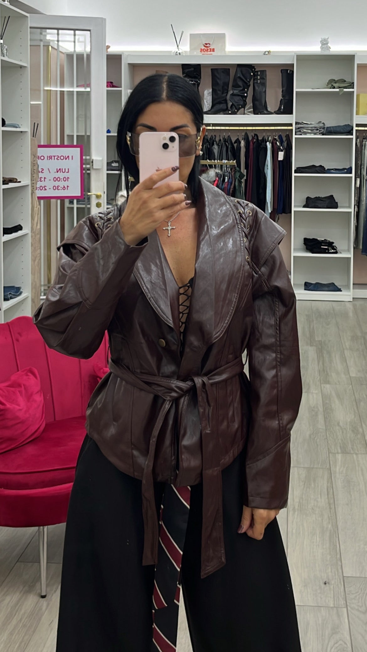 Giubbino in ecopelle top quality con bottoni e cintura dettagli spalla in taglia unica ma vestibilità comoda da tg XS a L
