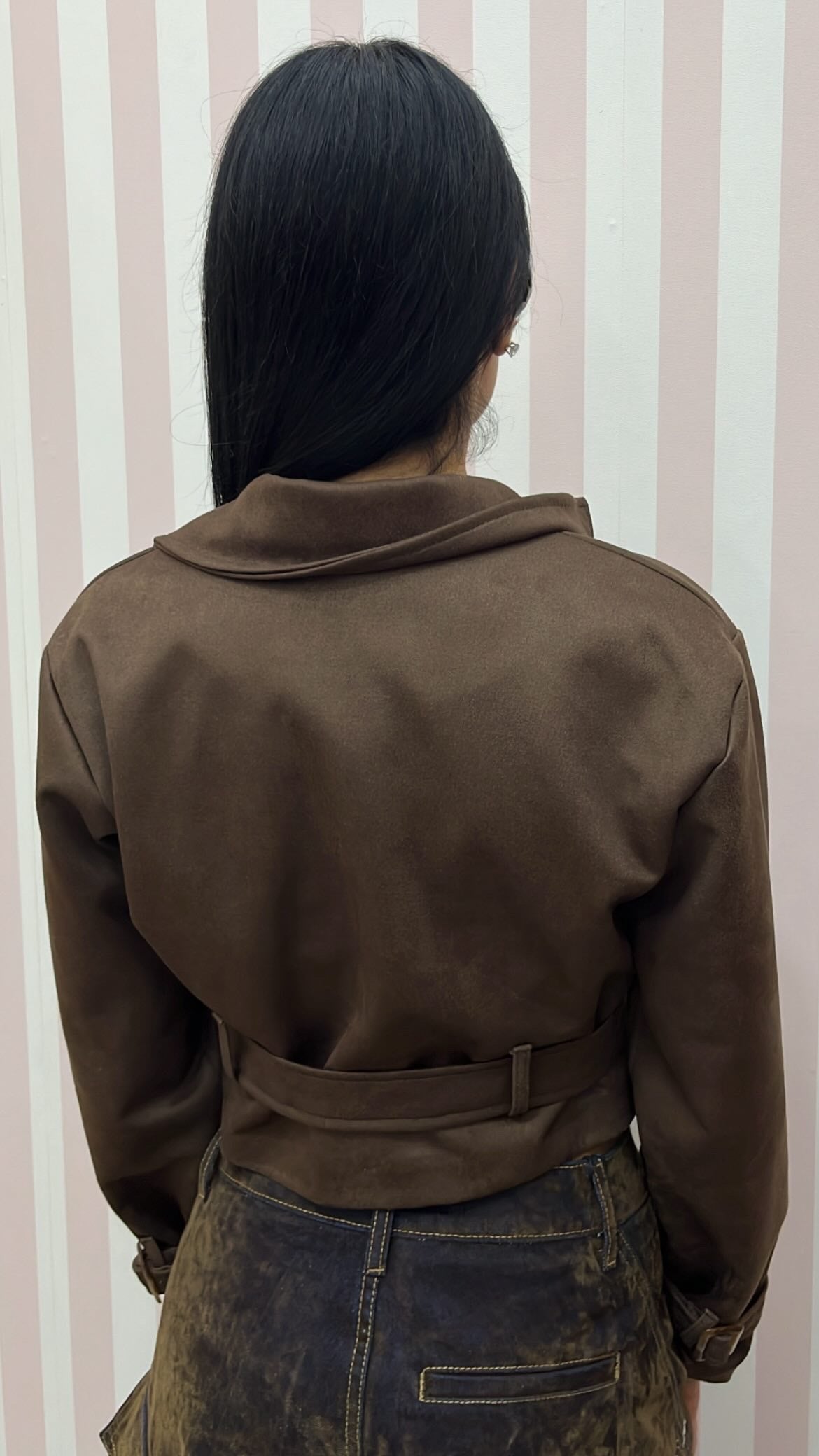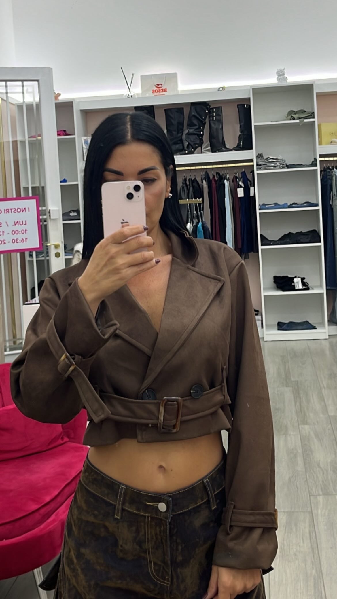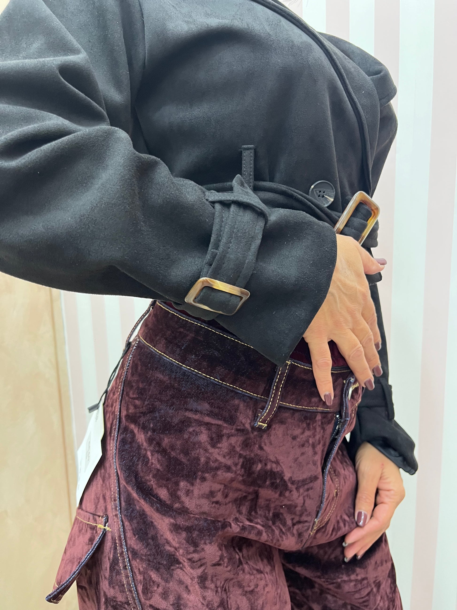 Giubbino crop in velluto con doppio bottone in taglia unica vestibilità comoda da tg XS a M