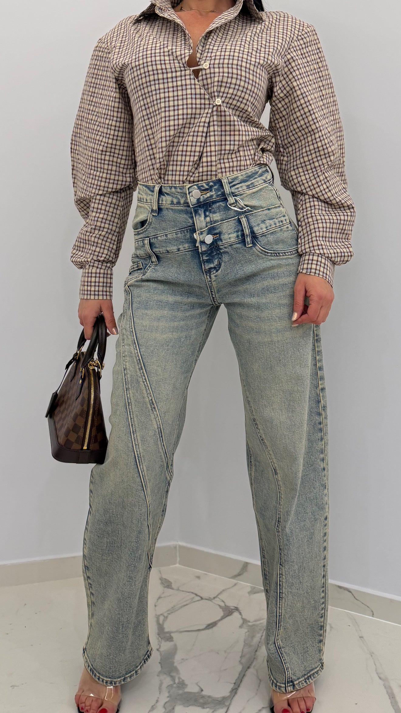 Jeans sfumato fit stupendo con doppio bottone dettagli più alto in vita consigliato elastico