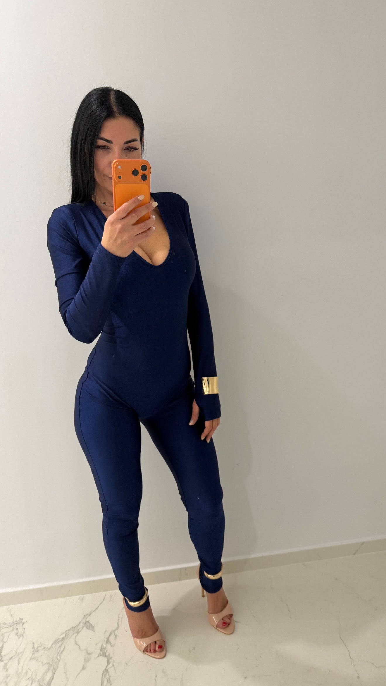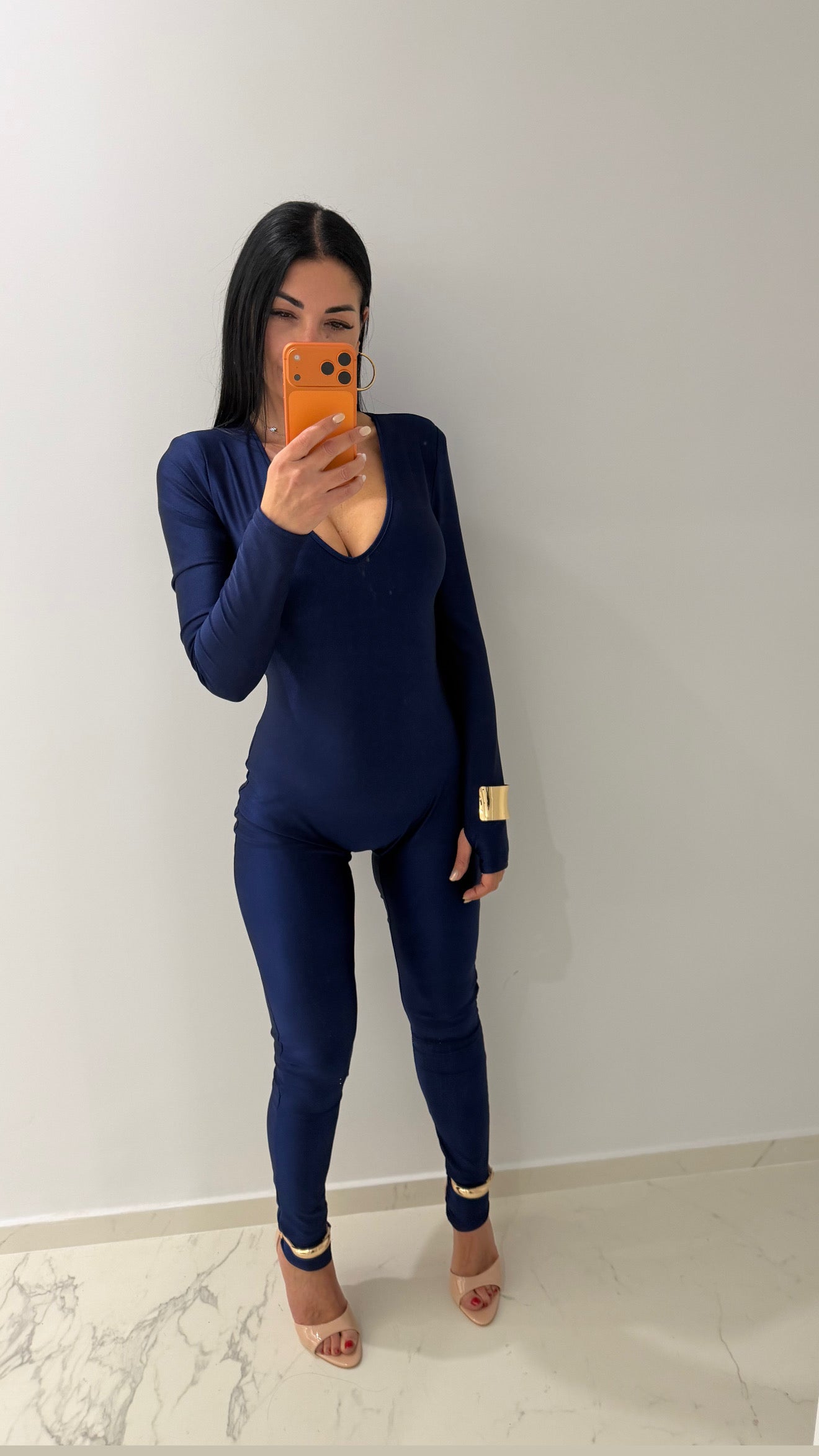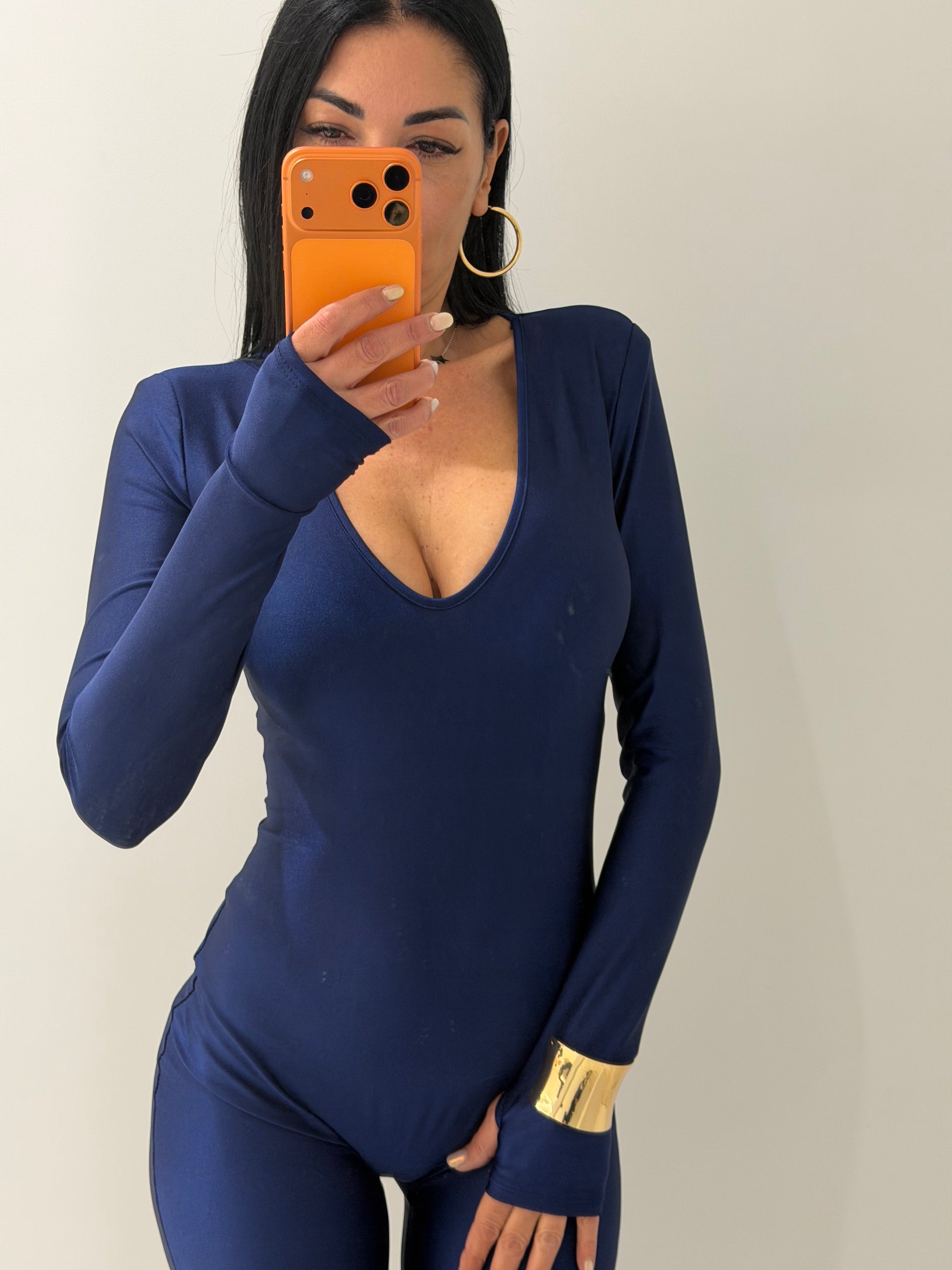 Jumpsuite stupenda elastica con spalline integrate che la rendono chic in taglia unica ma vestibilità comoda da tg XS a L manica a guanto