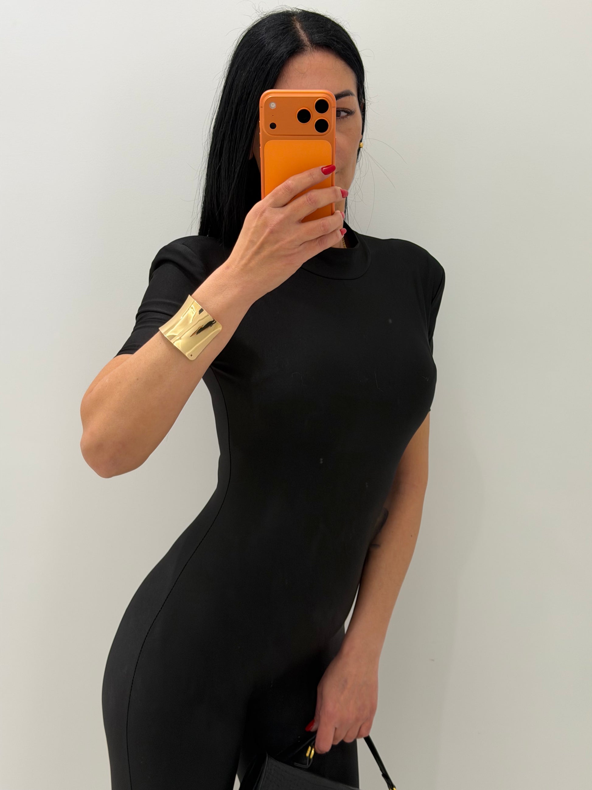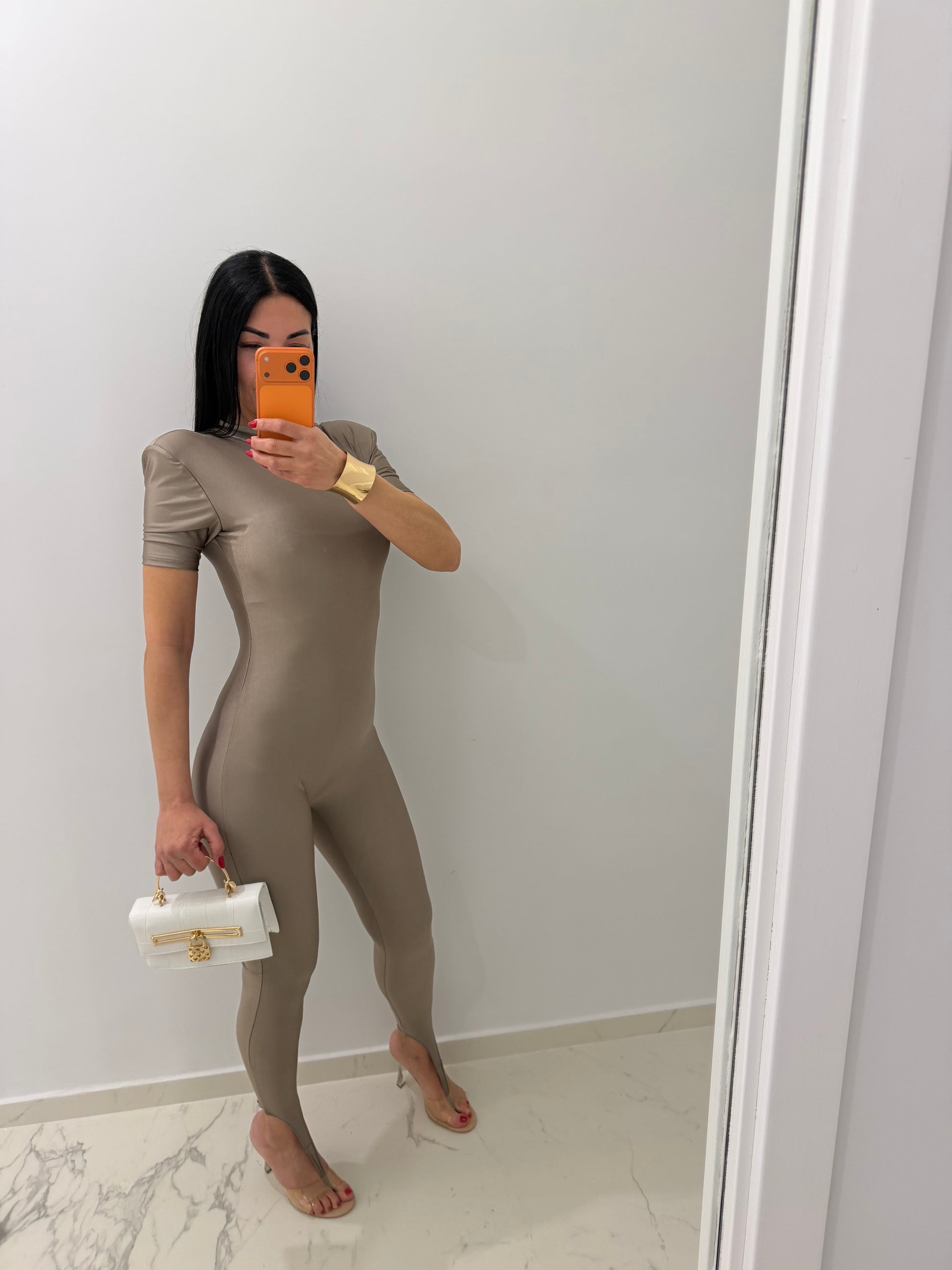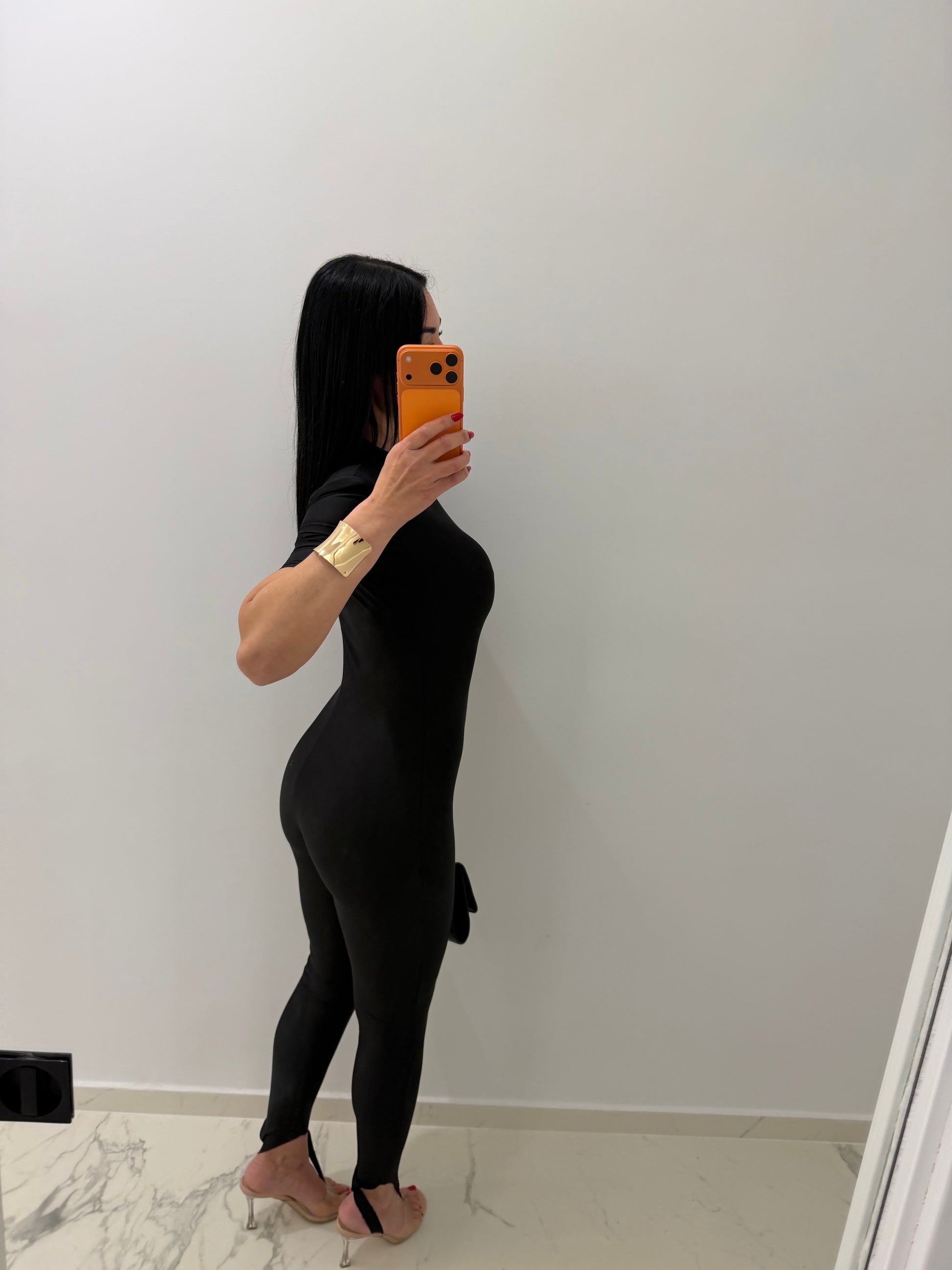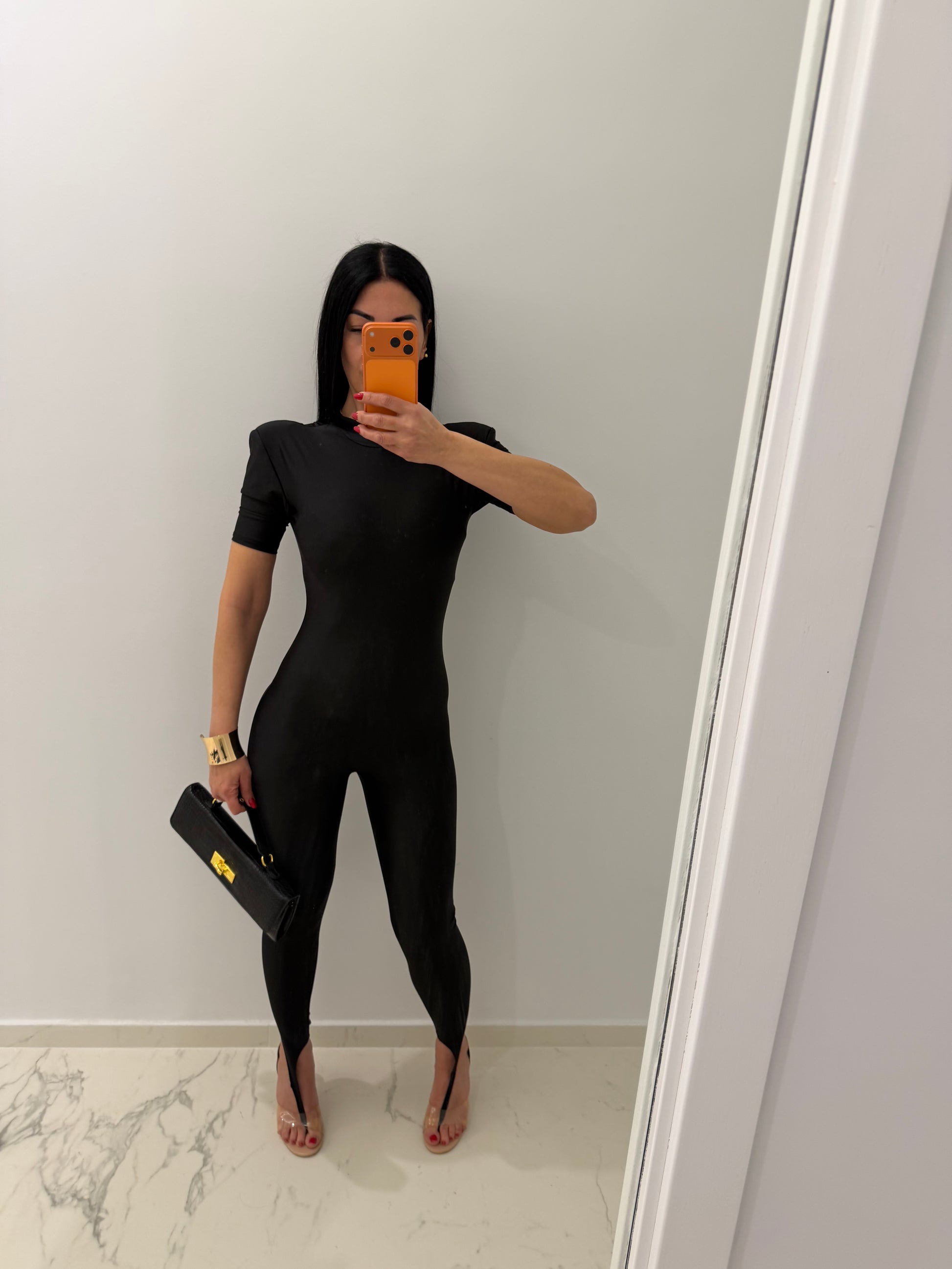 Jumpsuite stupenda con zip retro e con ghetta infradito consigliata in taglia unica ma vestibilità da tg XS a L tessuto elastico lucido