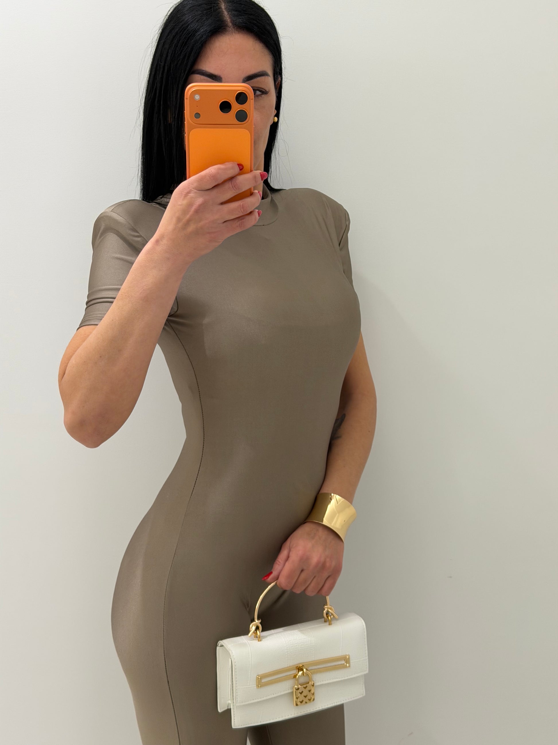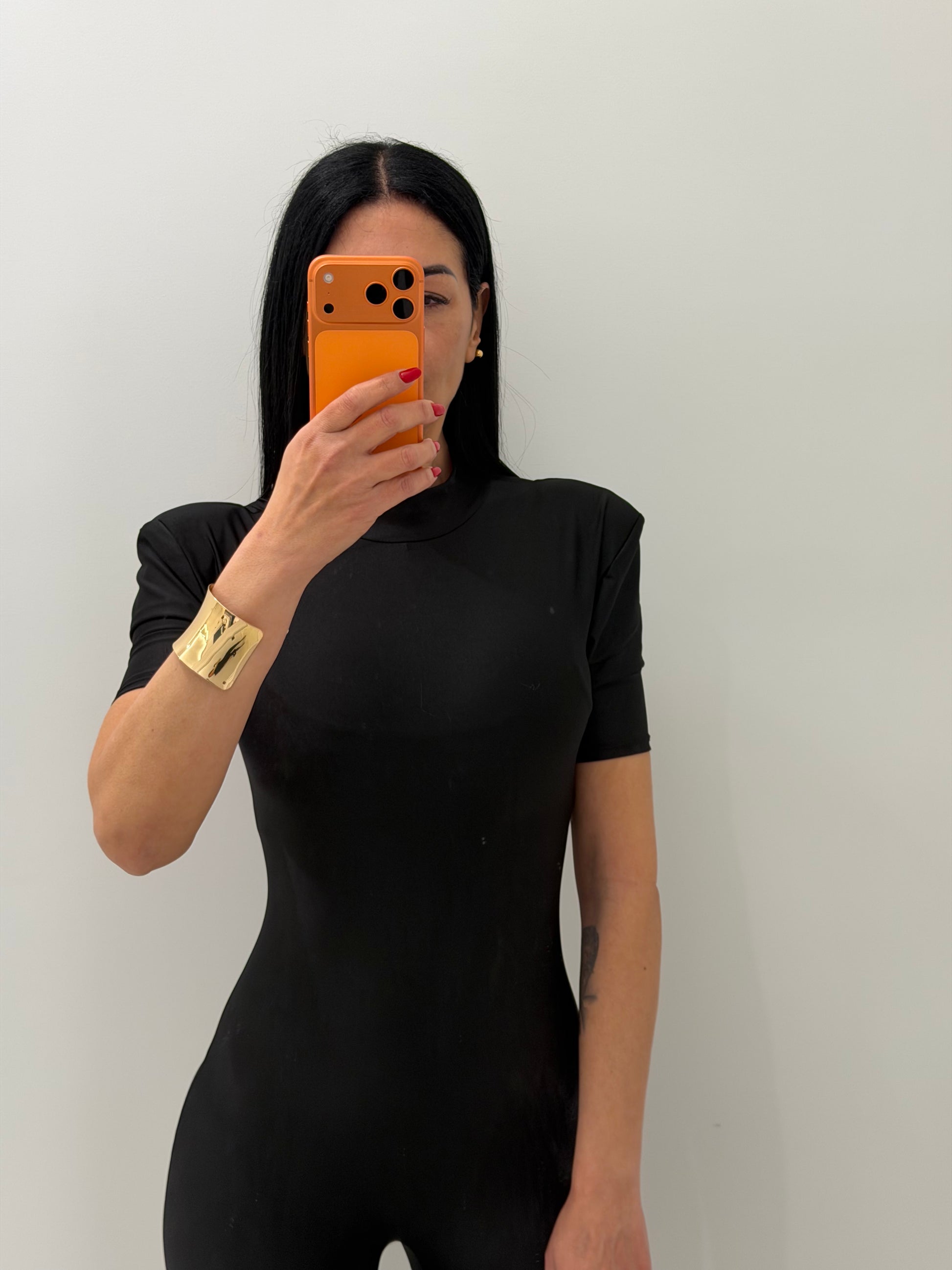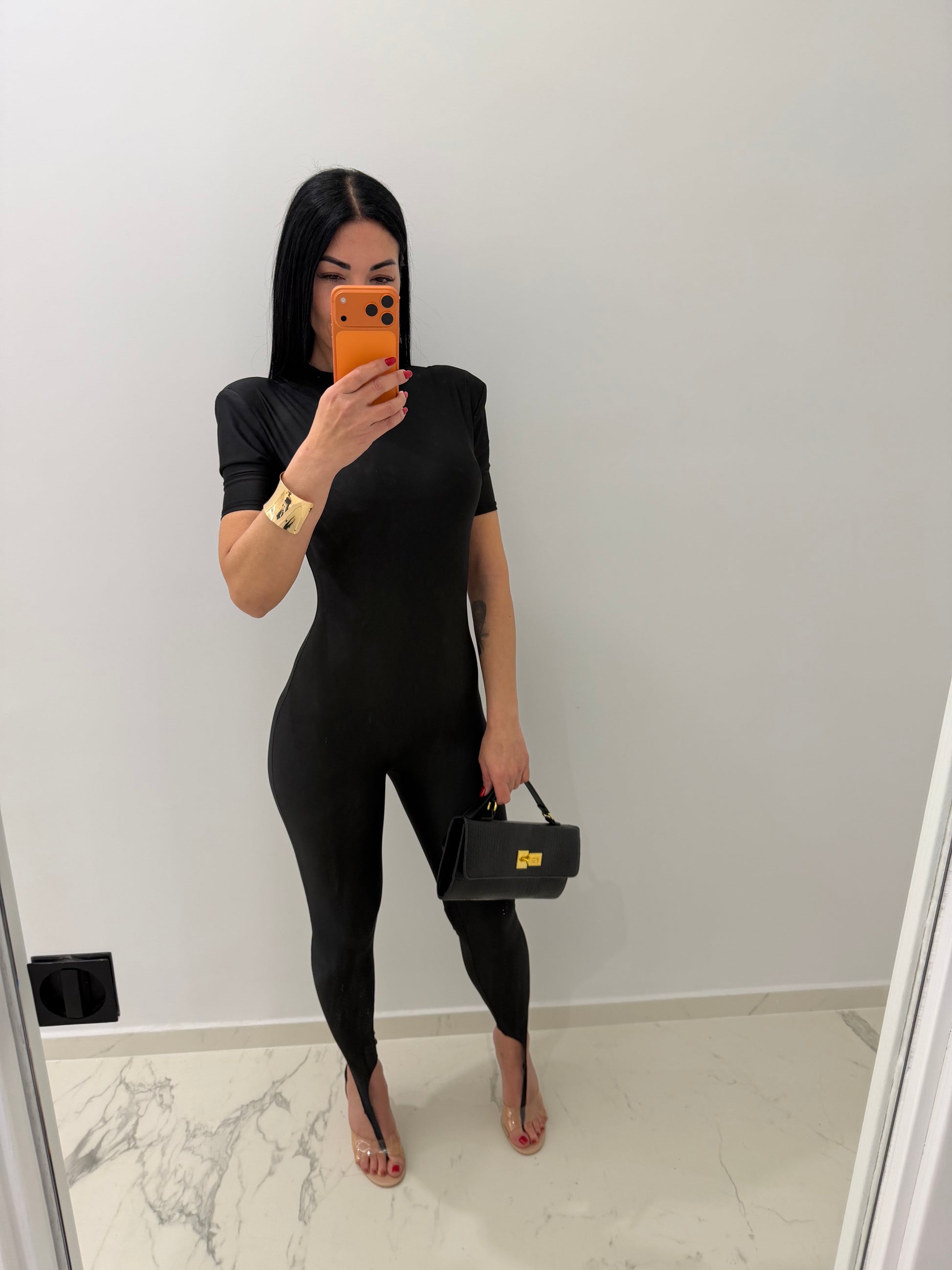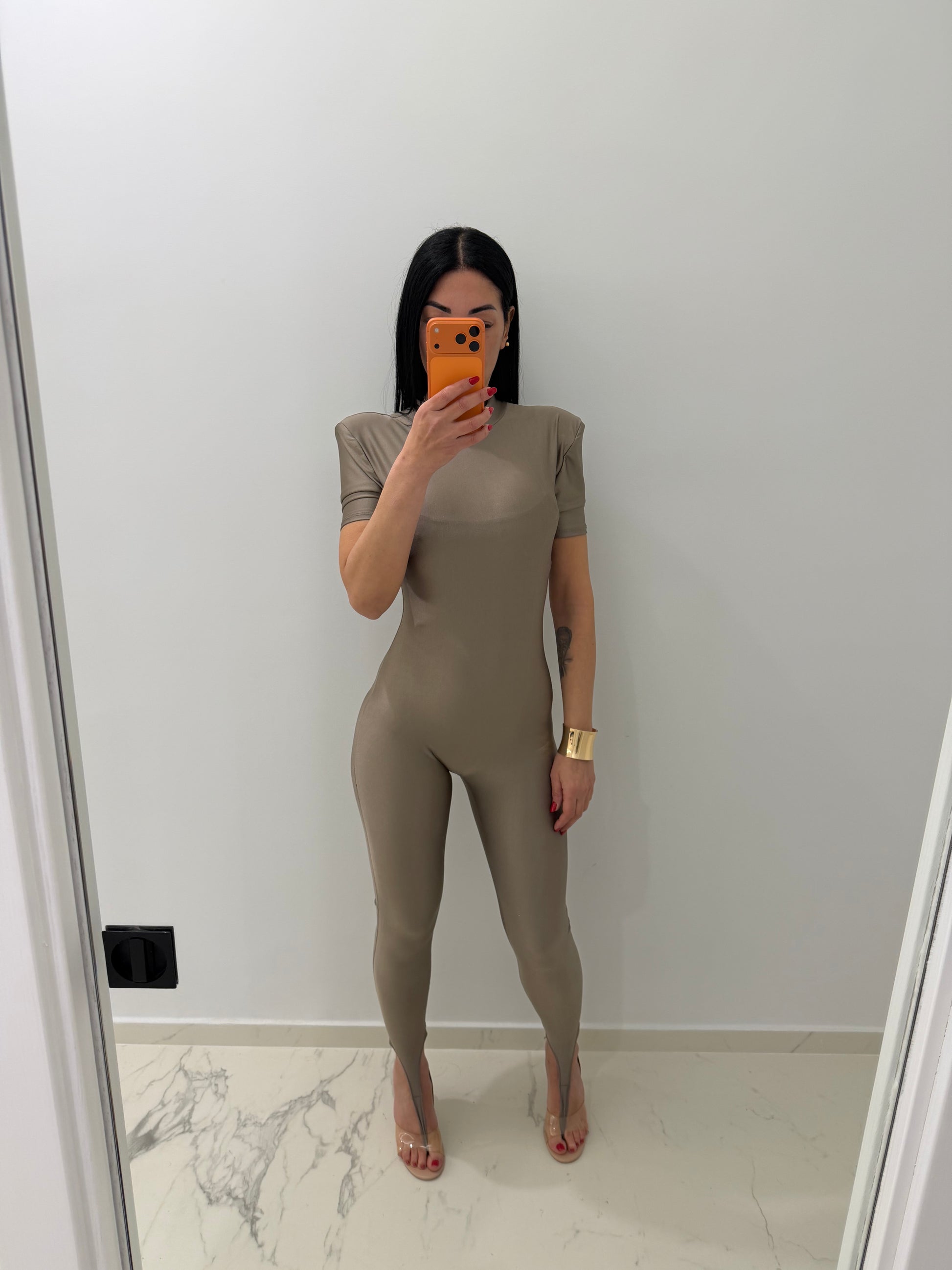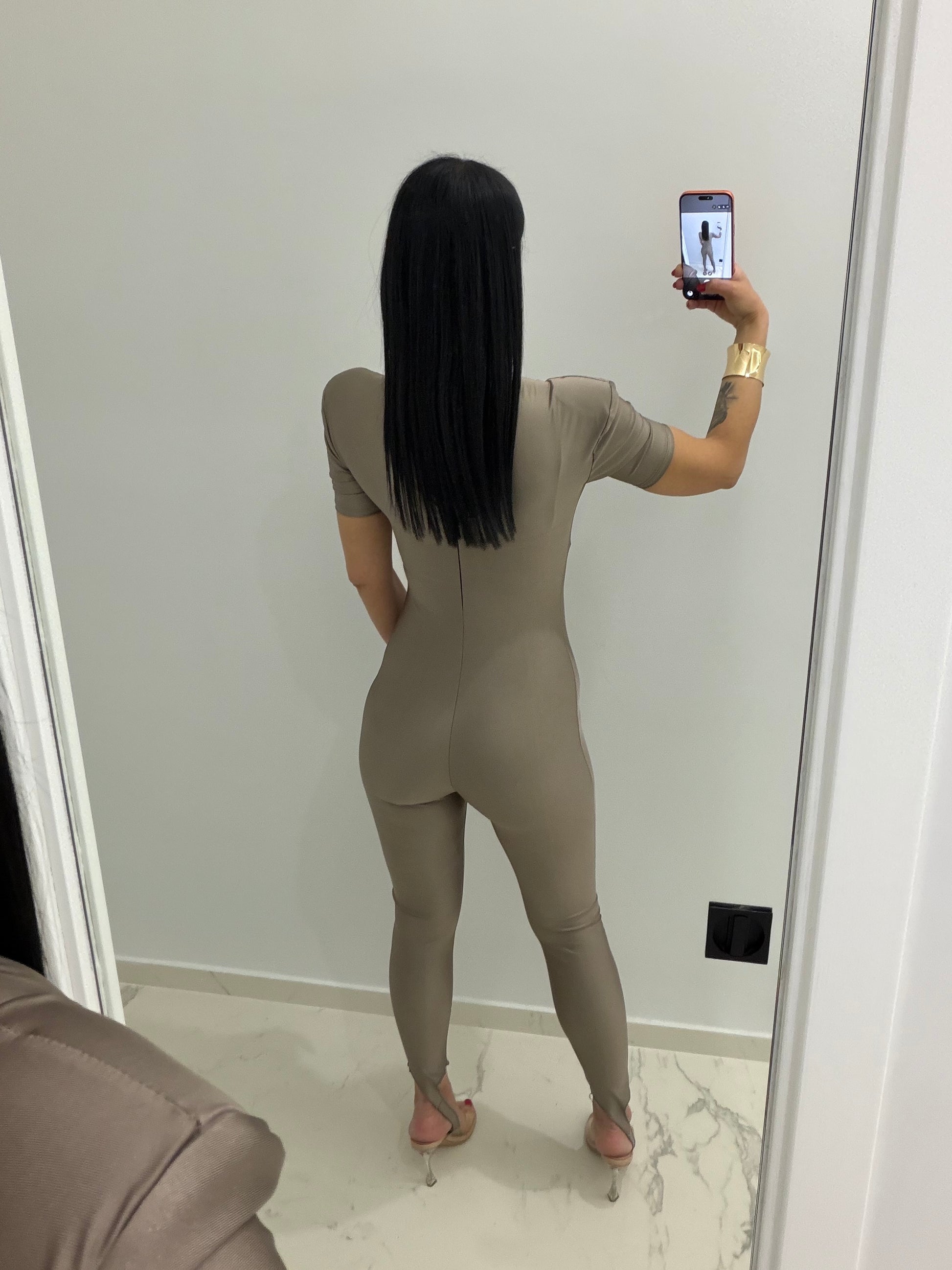 Jumpsuite stupenda con zip retro e con ghetta infradito consigliata in taglia unica ma vestibilità da tg XS a L tessuto elastico lucido