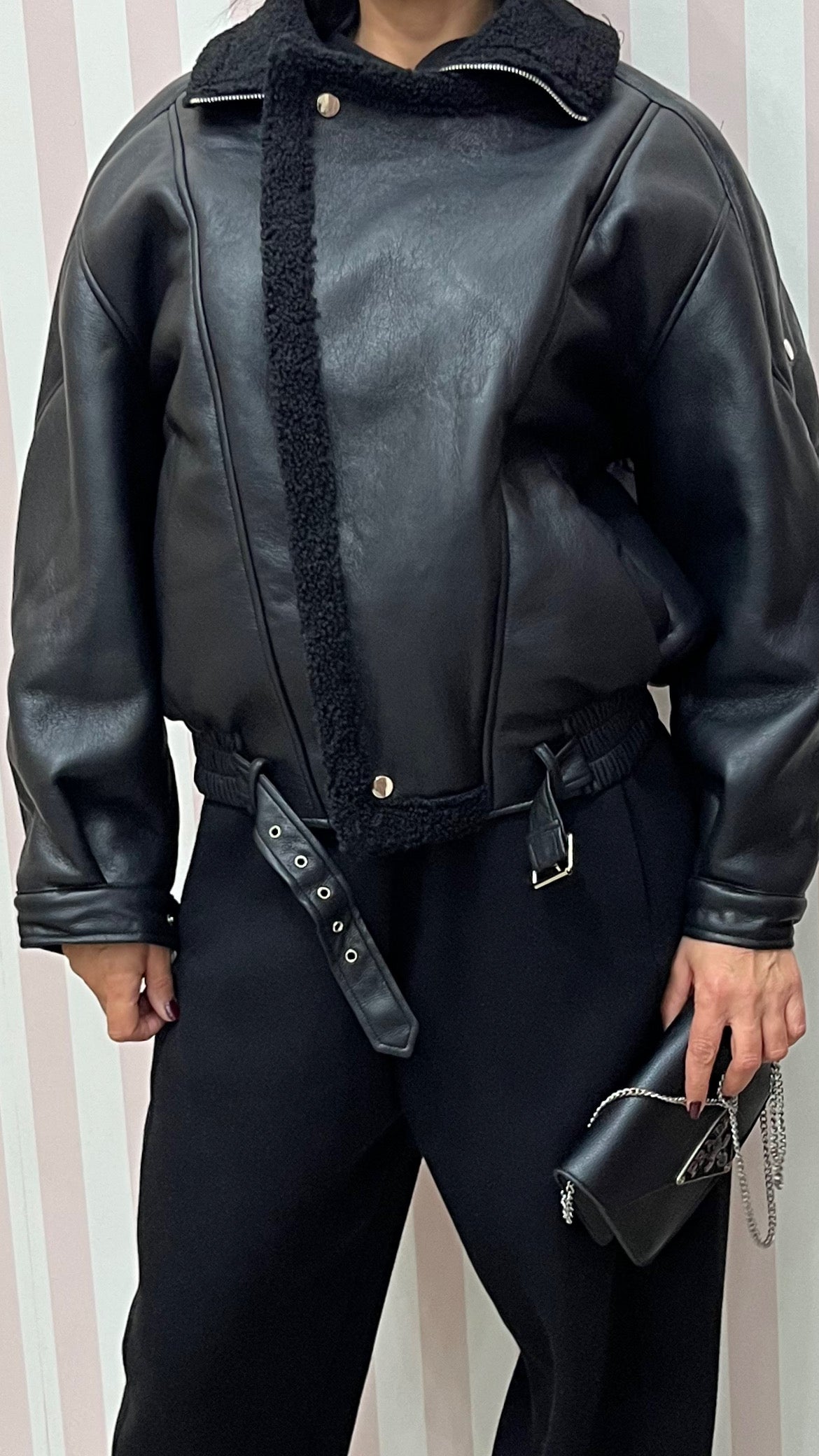 Montone in pelle top quality con zip e bottoni cintura in taglia unica ma vestibilità comoda da tg S a L
