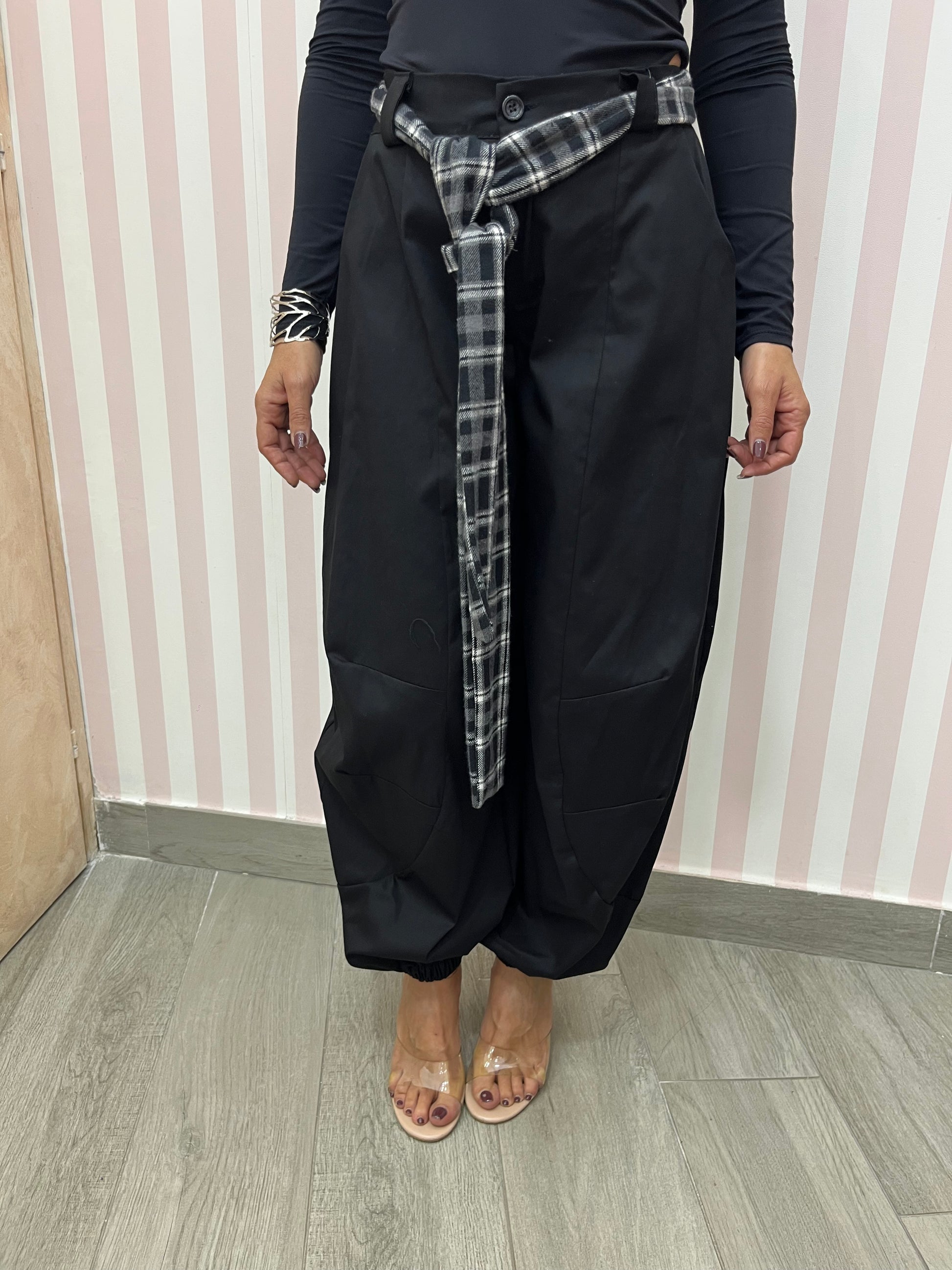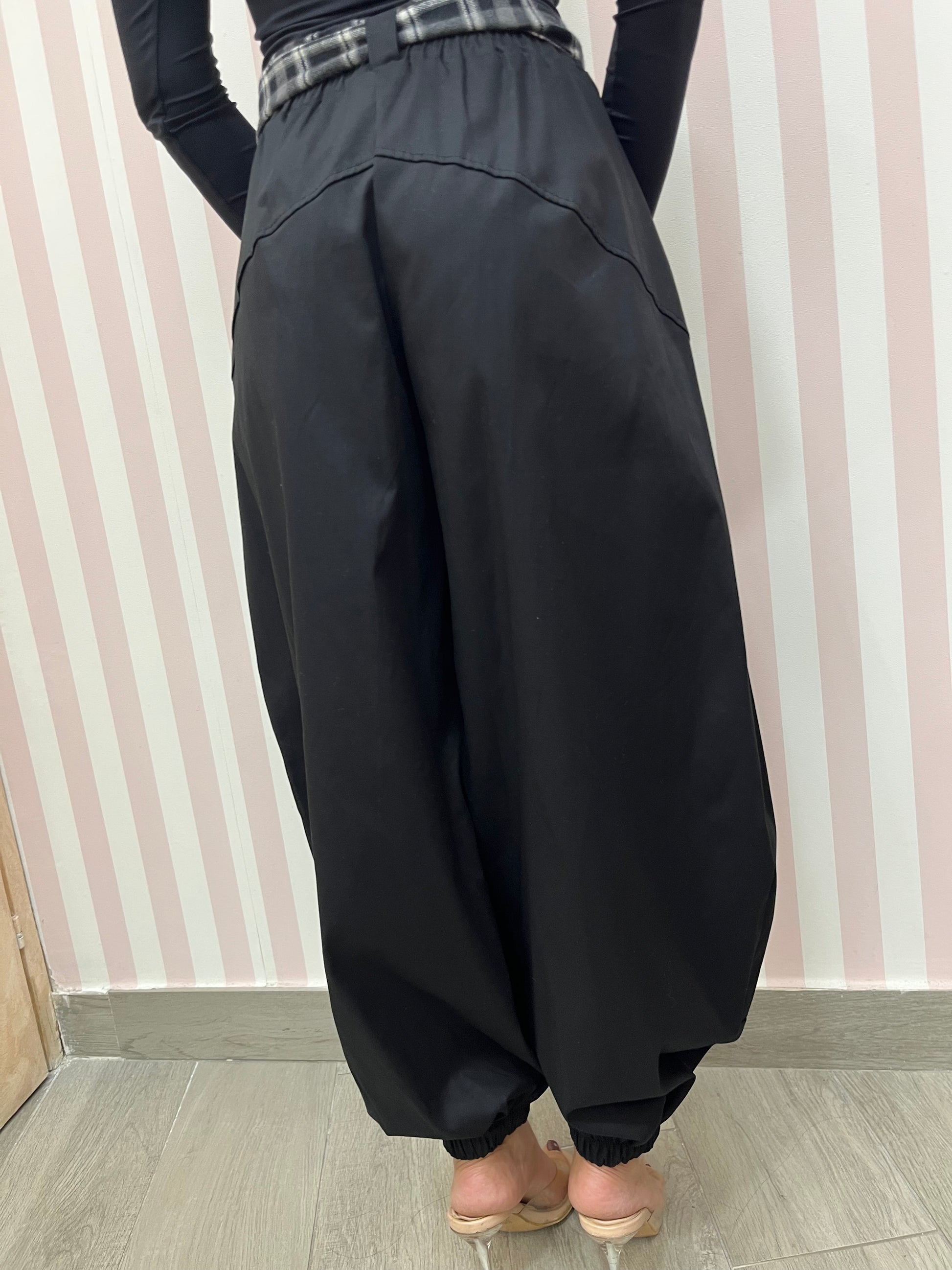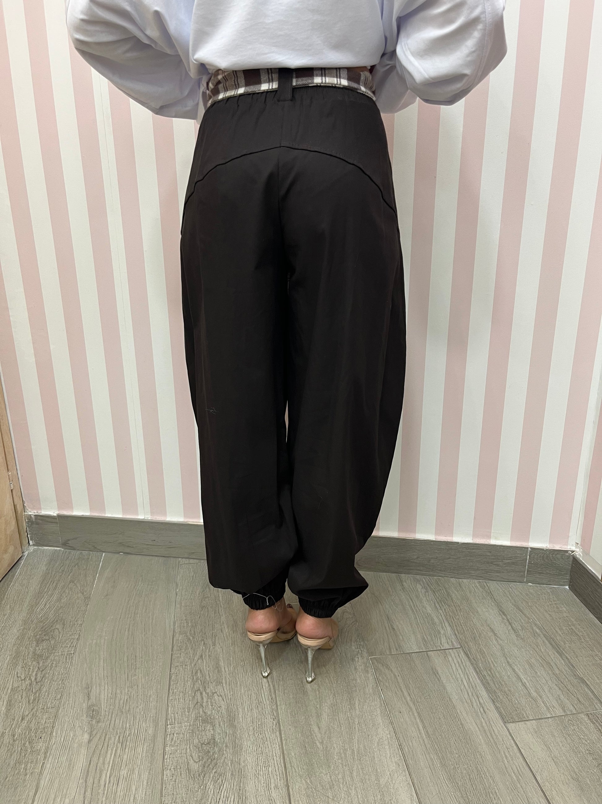 Pantacargo con elastico al di sotto con bottone e zip cintura in tessuto inclusa in taglia unica ma vestibilità comoda da tg XS a M
