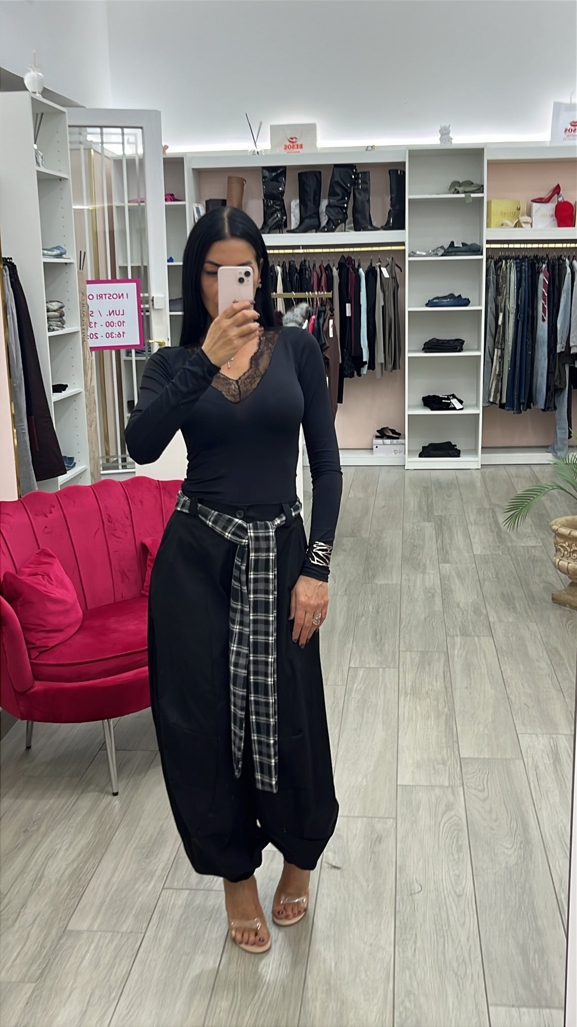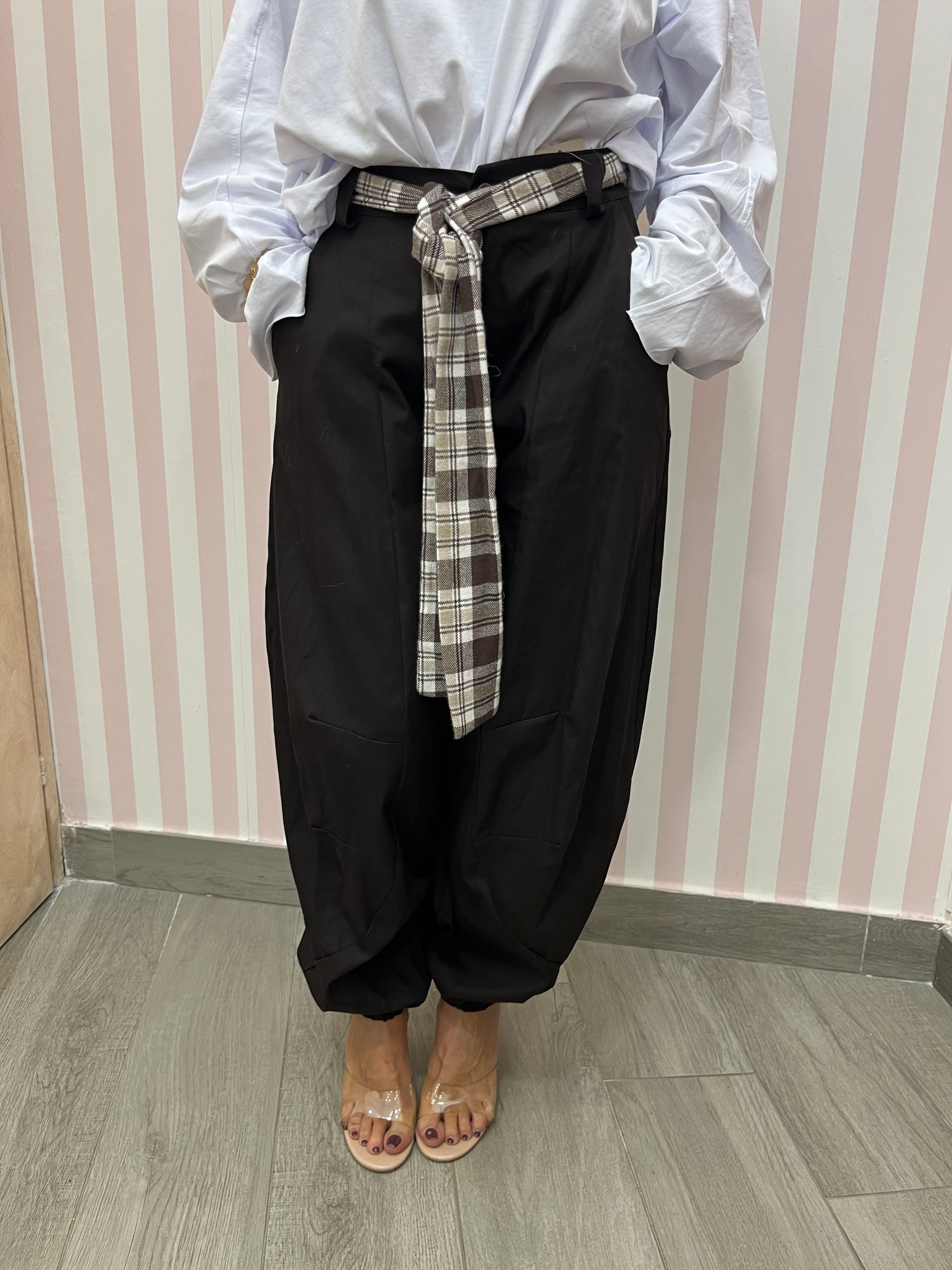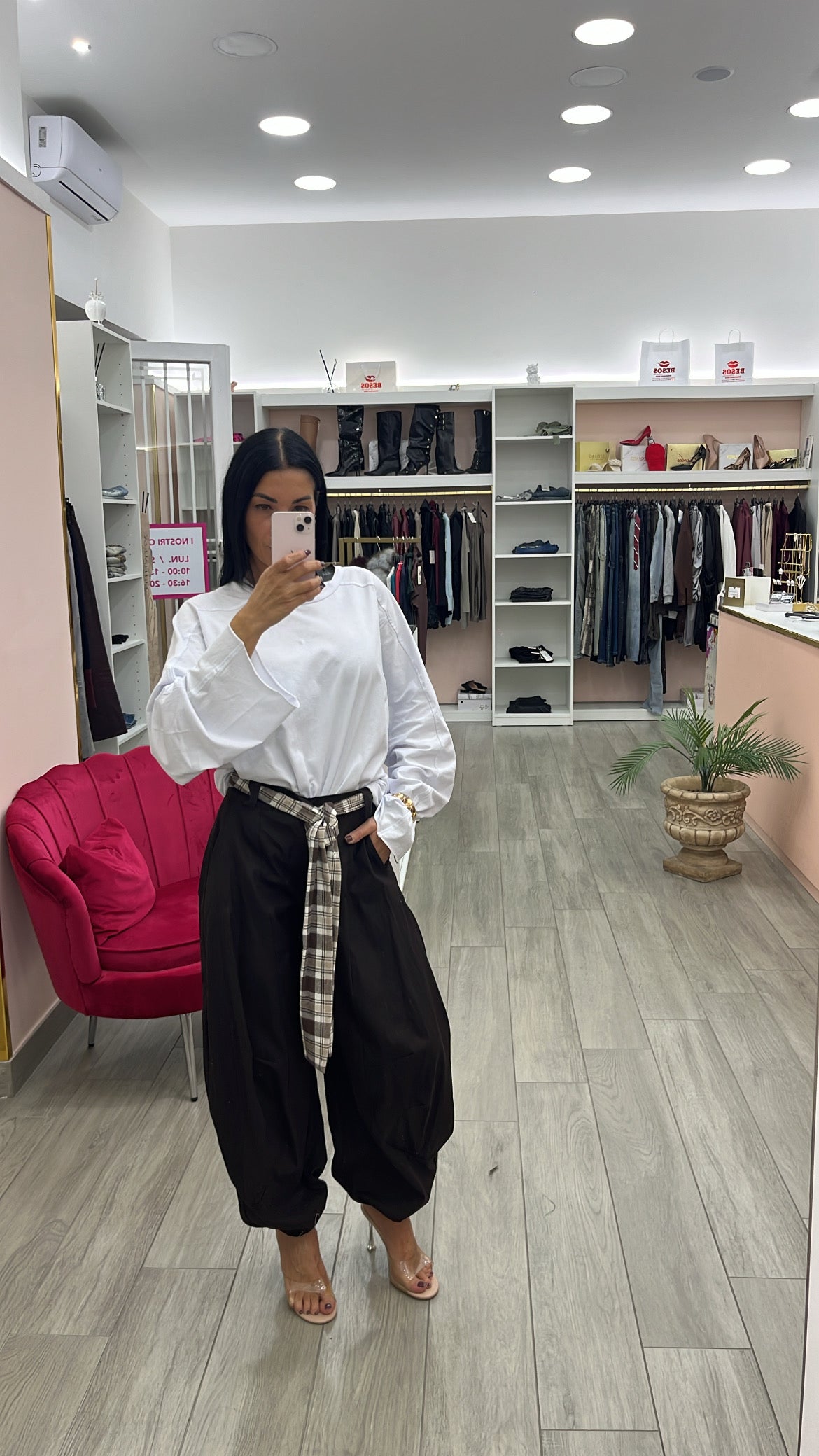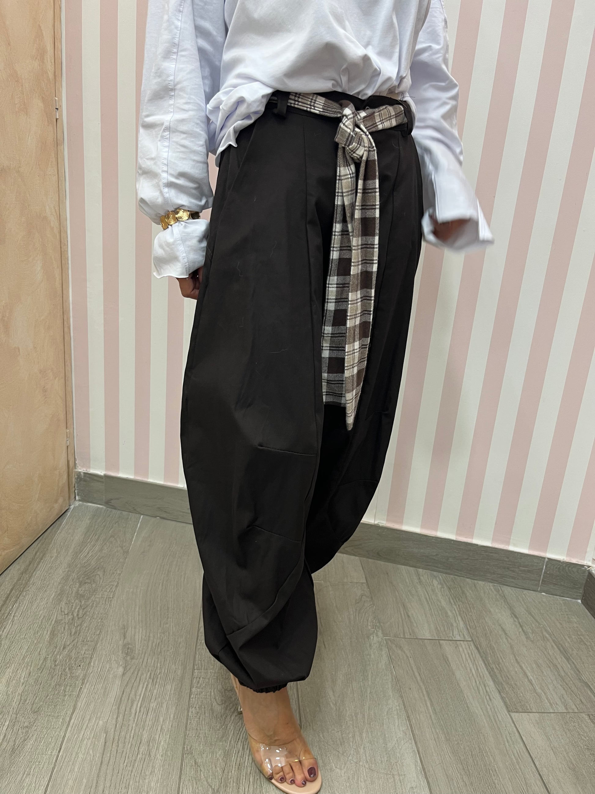 Pantacargo con elastico al di sotto con bottone e zip cintura in tessuto inclusa in taglia unica ma vestibilità comoda da tg XS a M