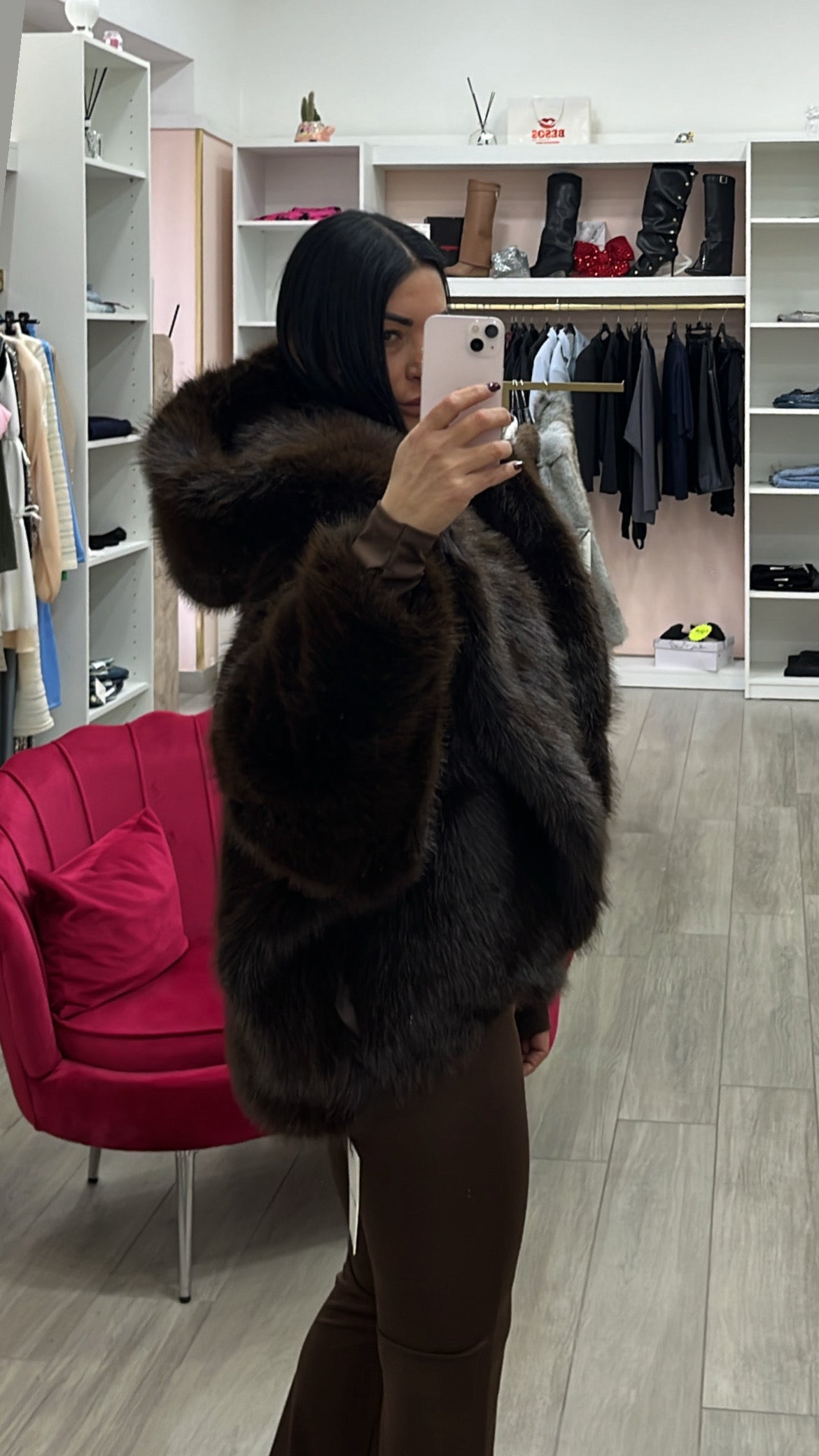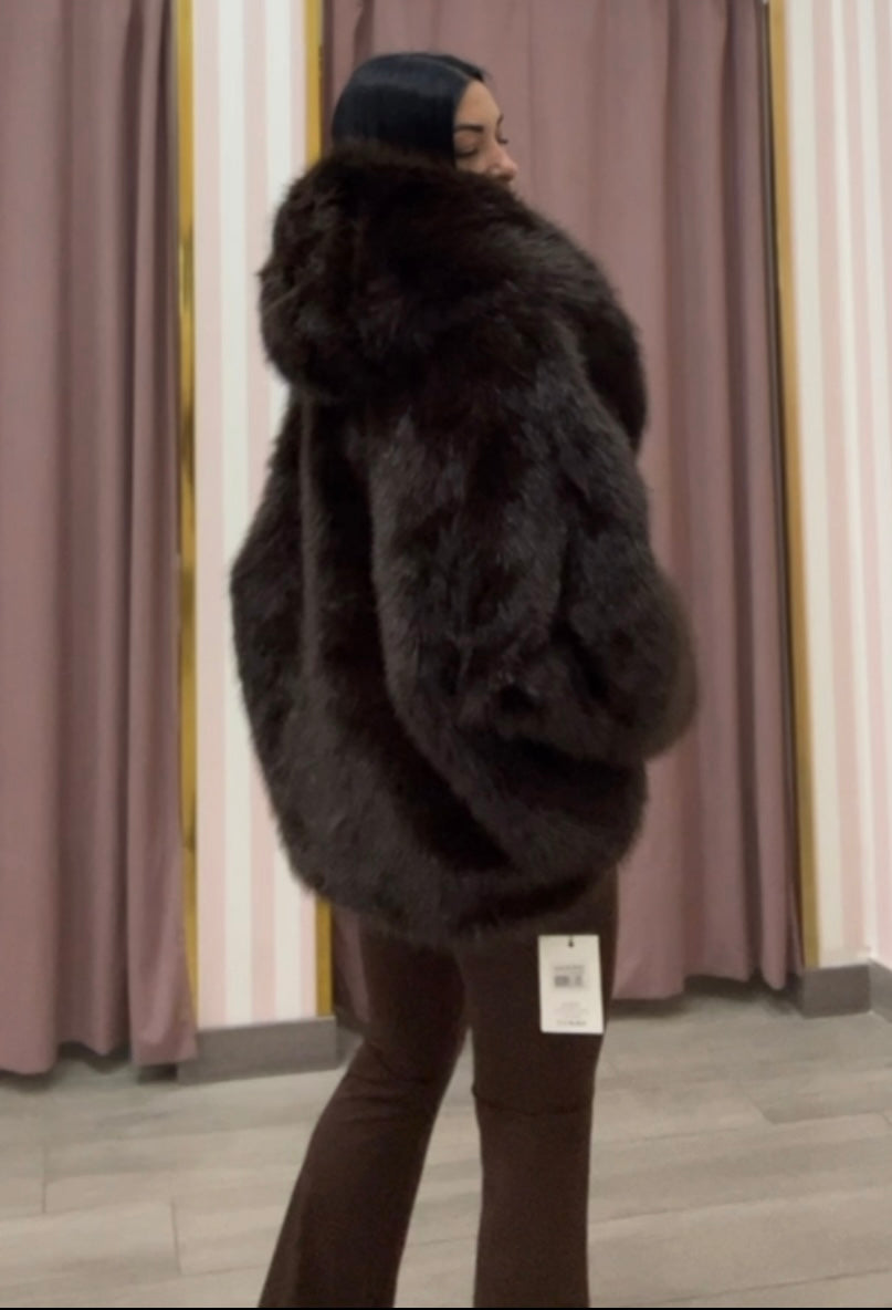 Eco fur top quality caldissima chiusura con ciapoe interne ampio cappuccio consigliata in taglia unica ma vestibilità comoda da tg S a L
