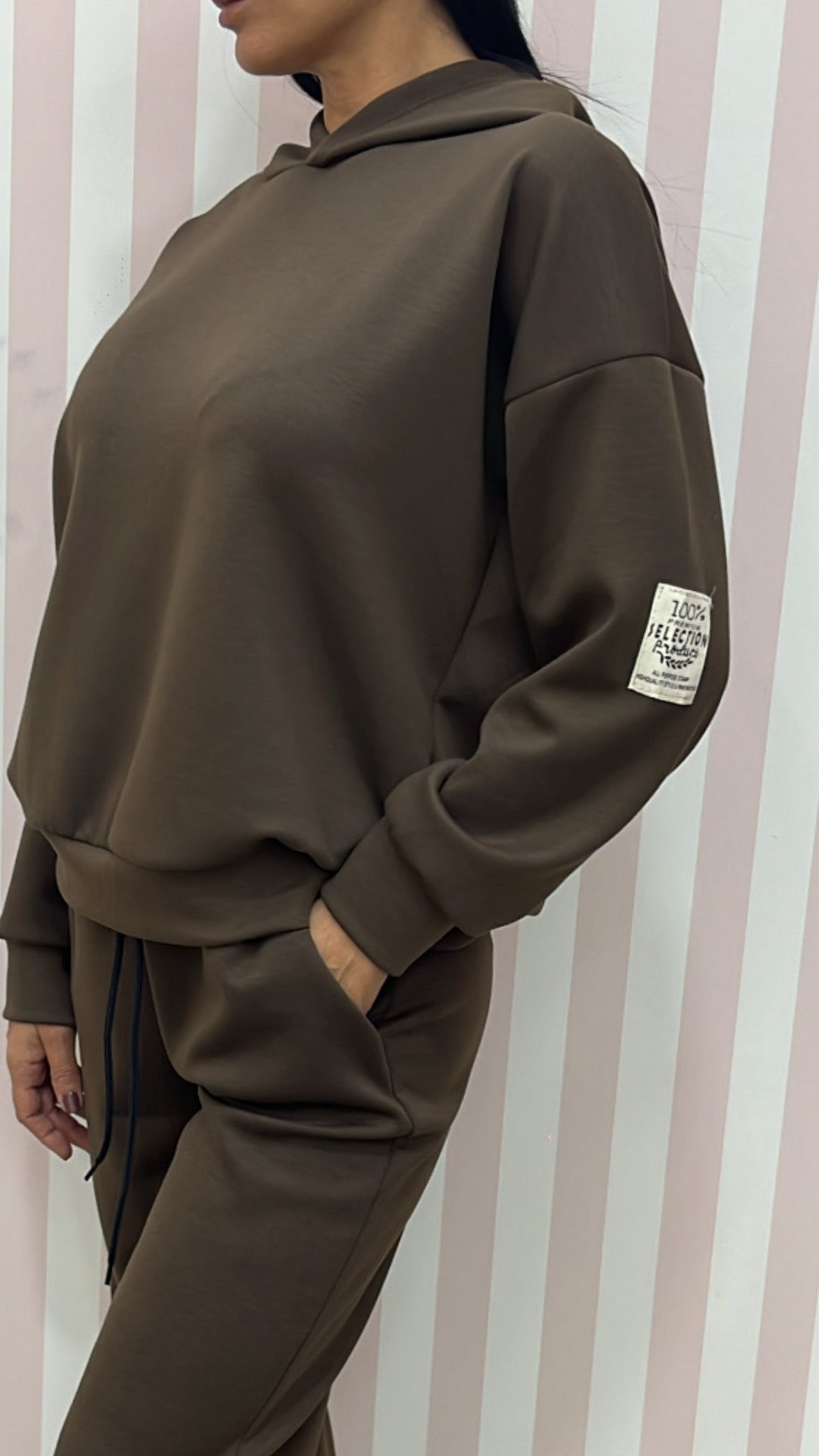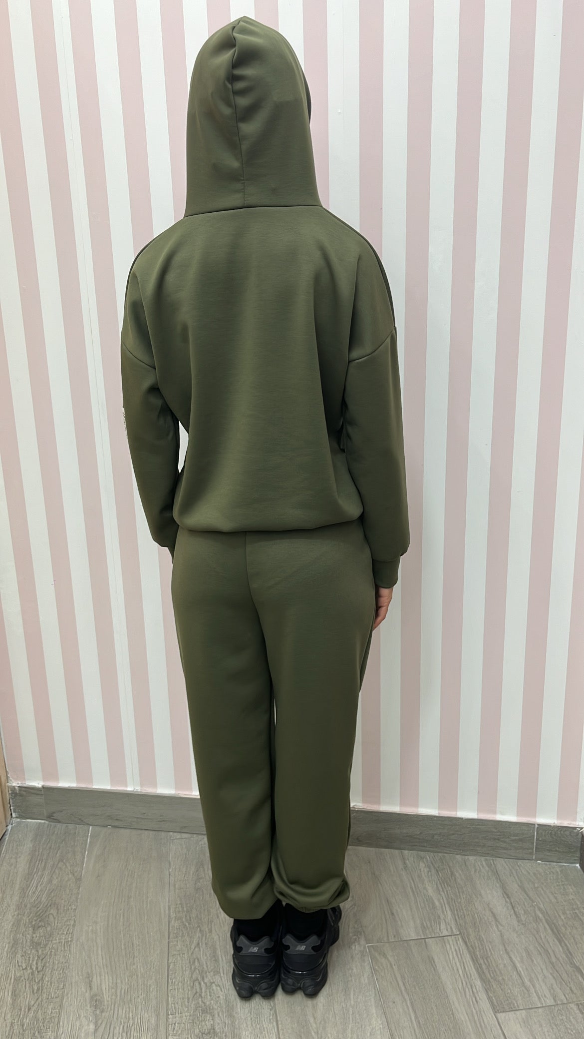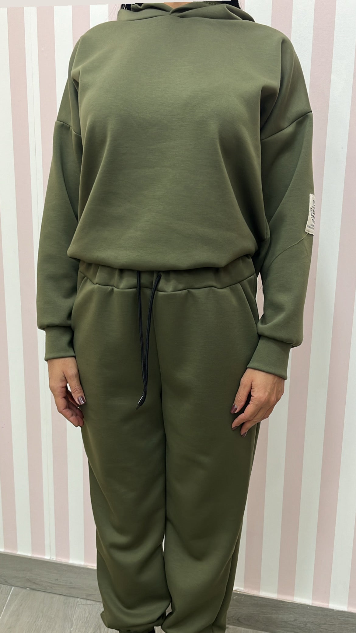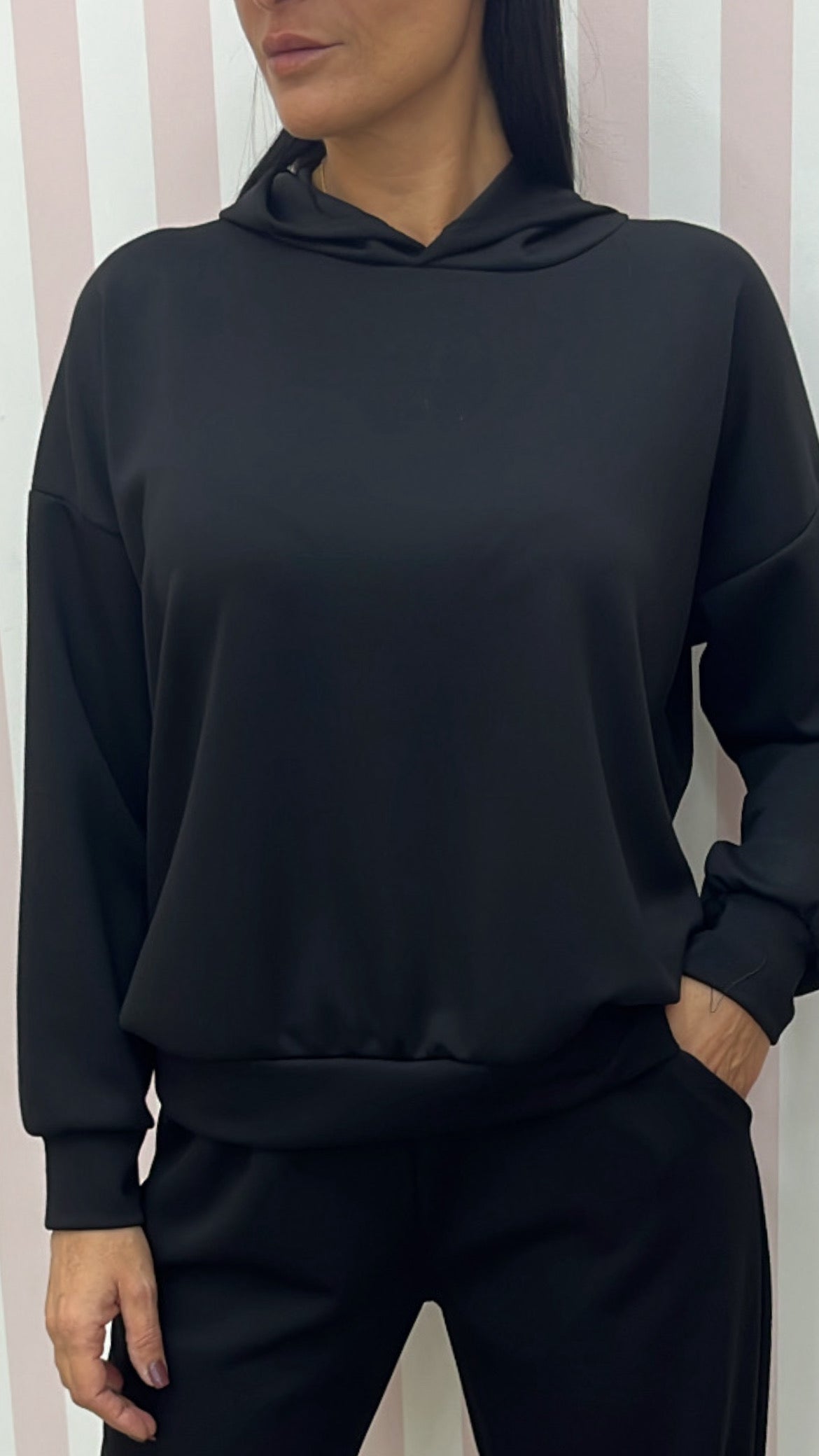 Tuta low cost leggermente felpata all interno con elastico in vita e cappuccio in taglia unica ma vestibilità comoda da tg XS a L