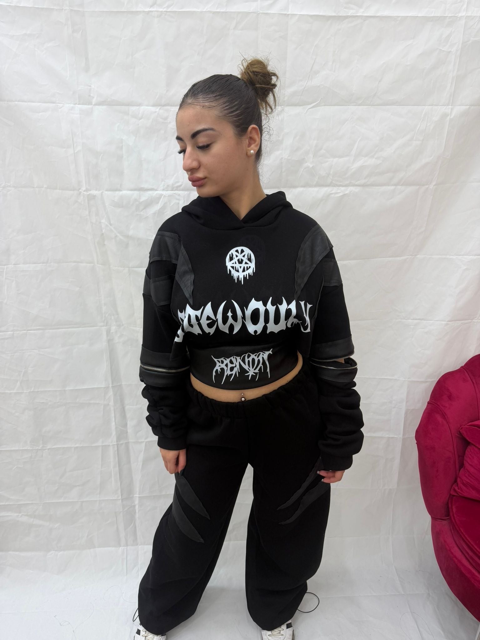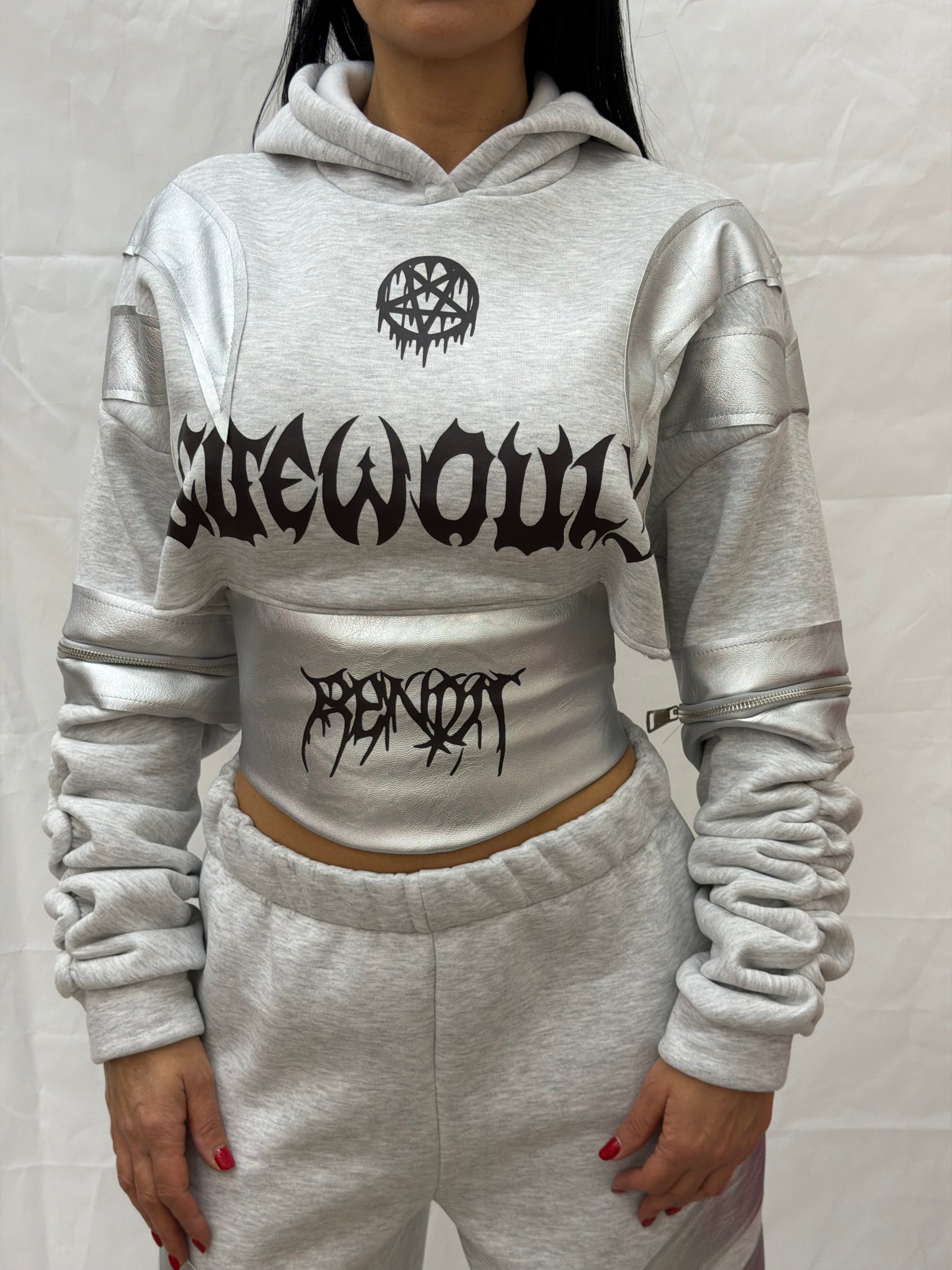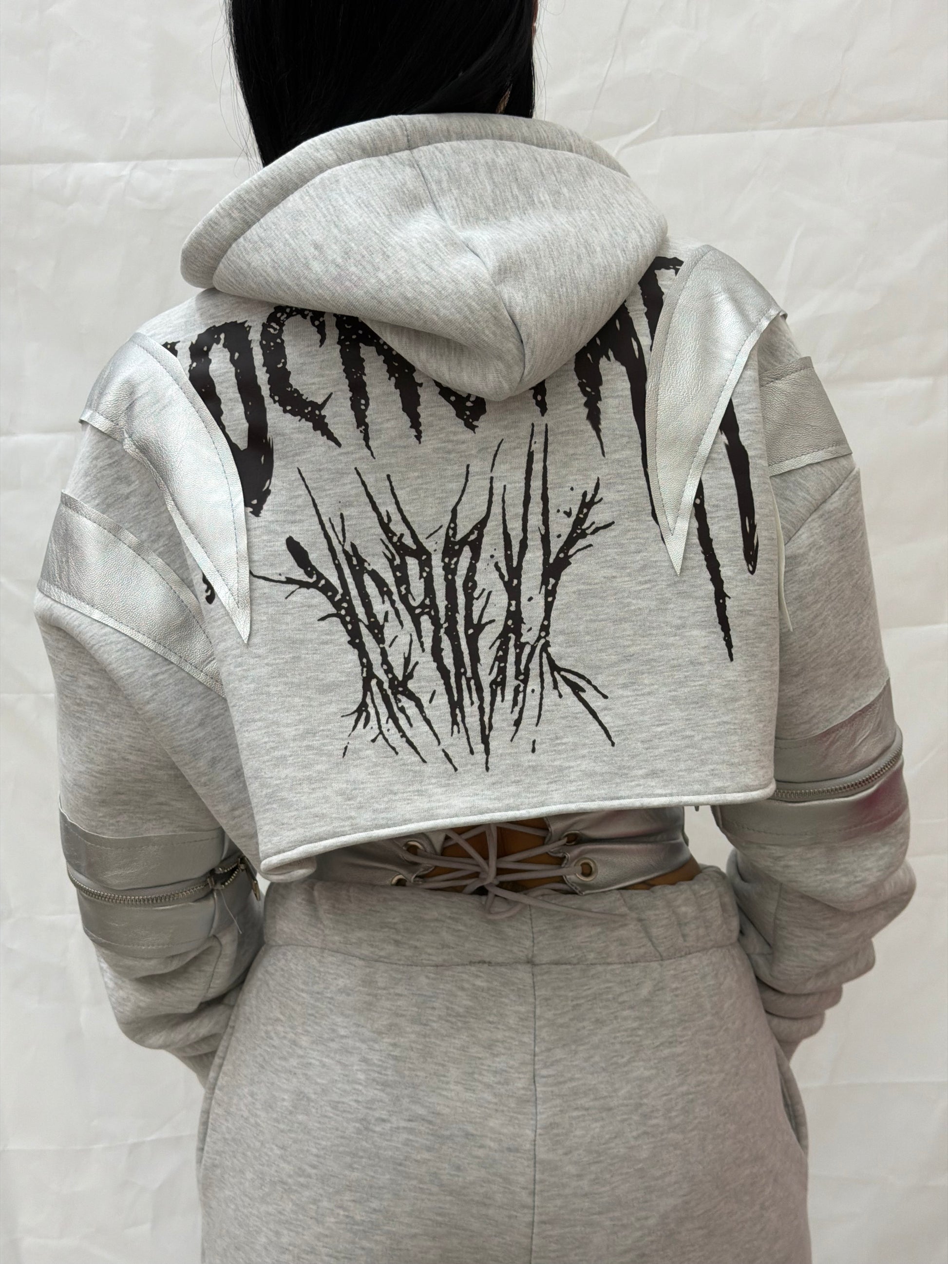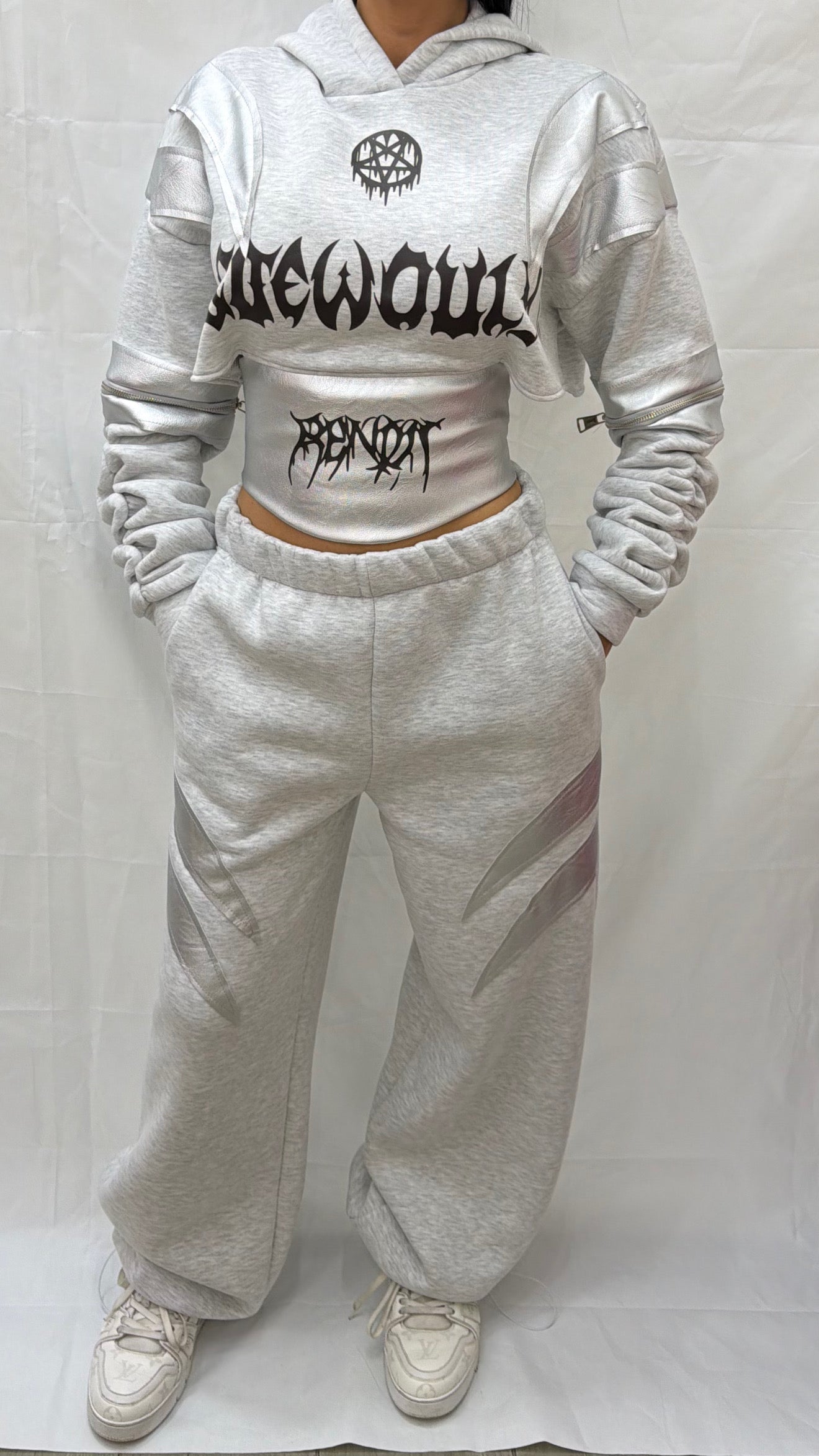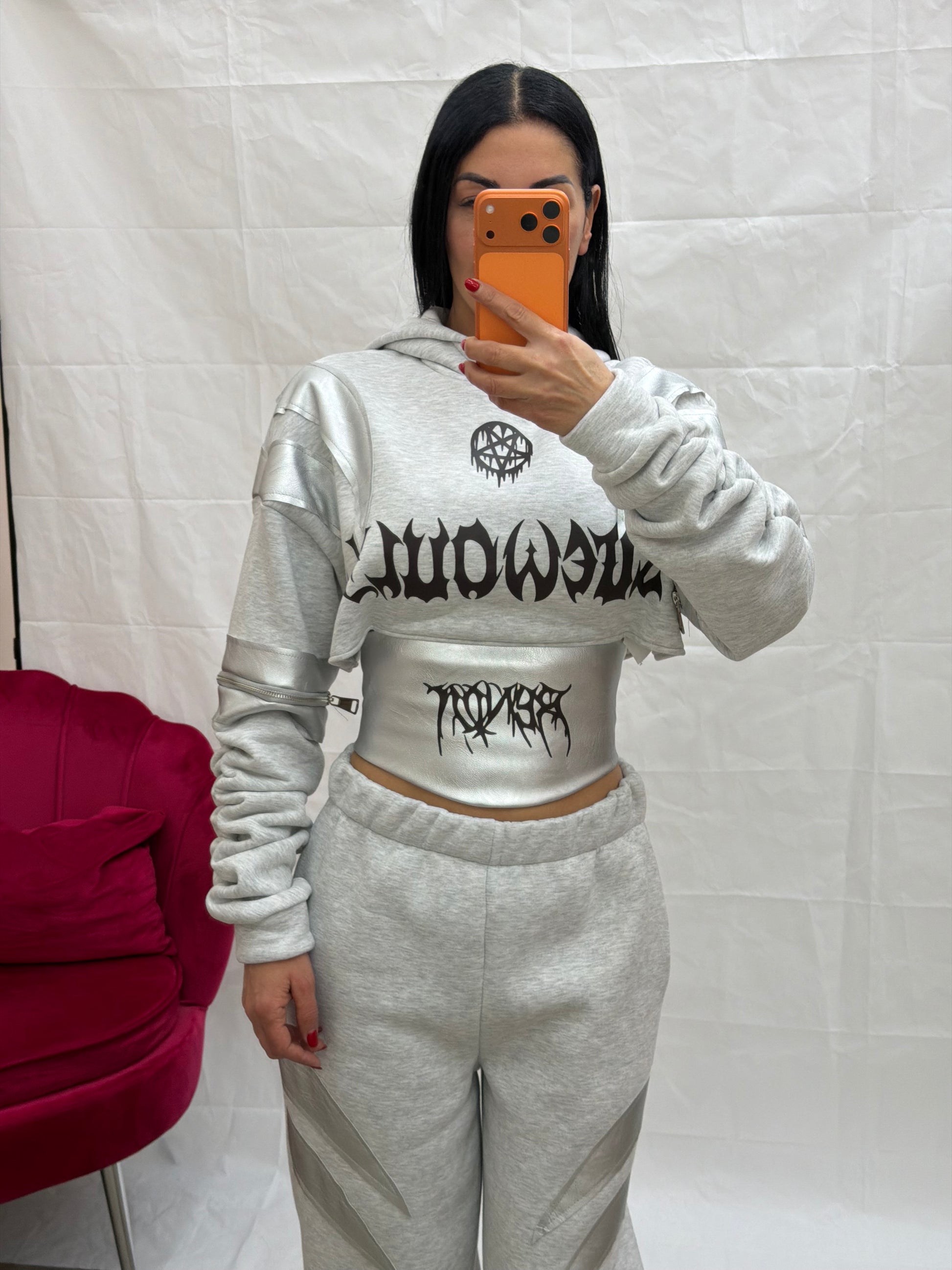 Tuta super particolare felpata con dettagli retro mixato dal grigio con argento pantalone con coulisse zip sul braccio consigliata in taglia unica ma vestibilità comoda da tg XS a L