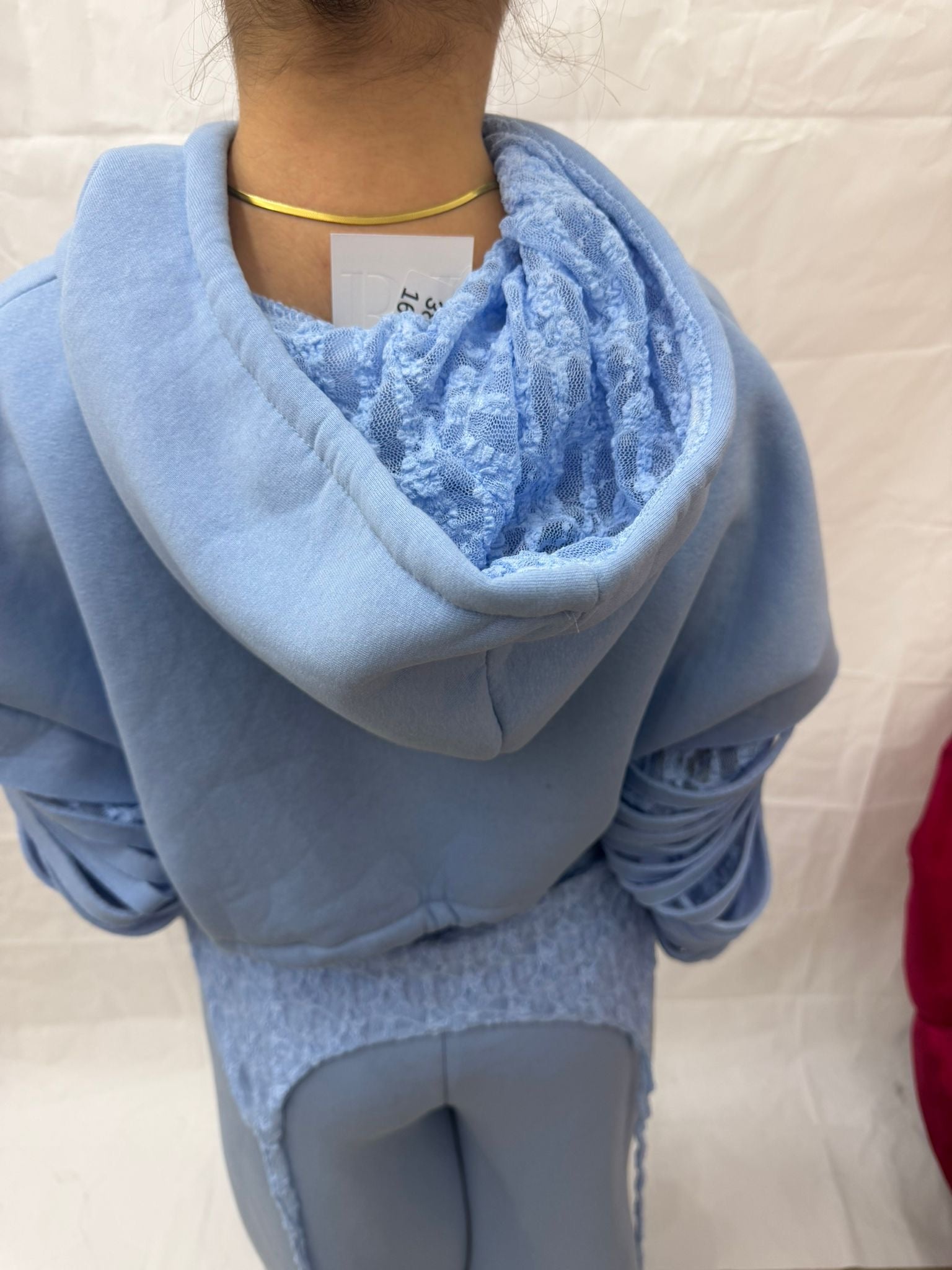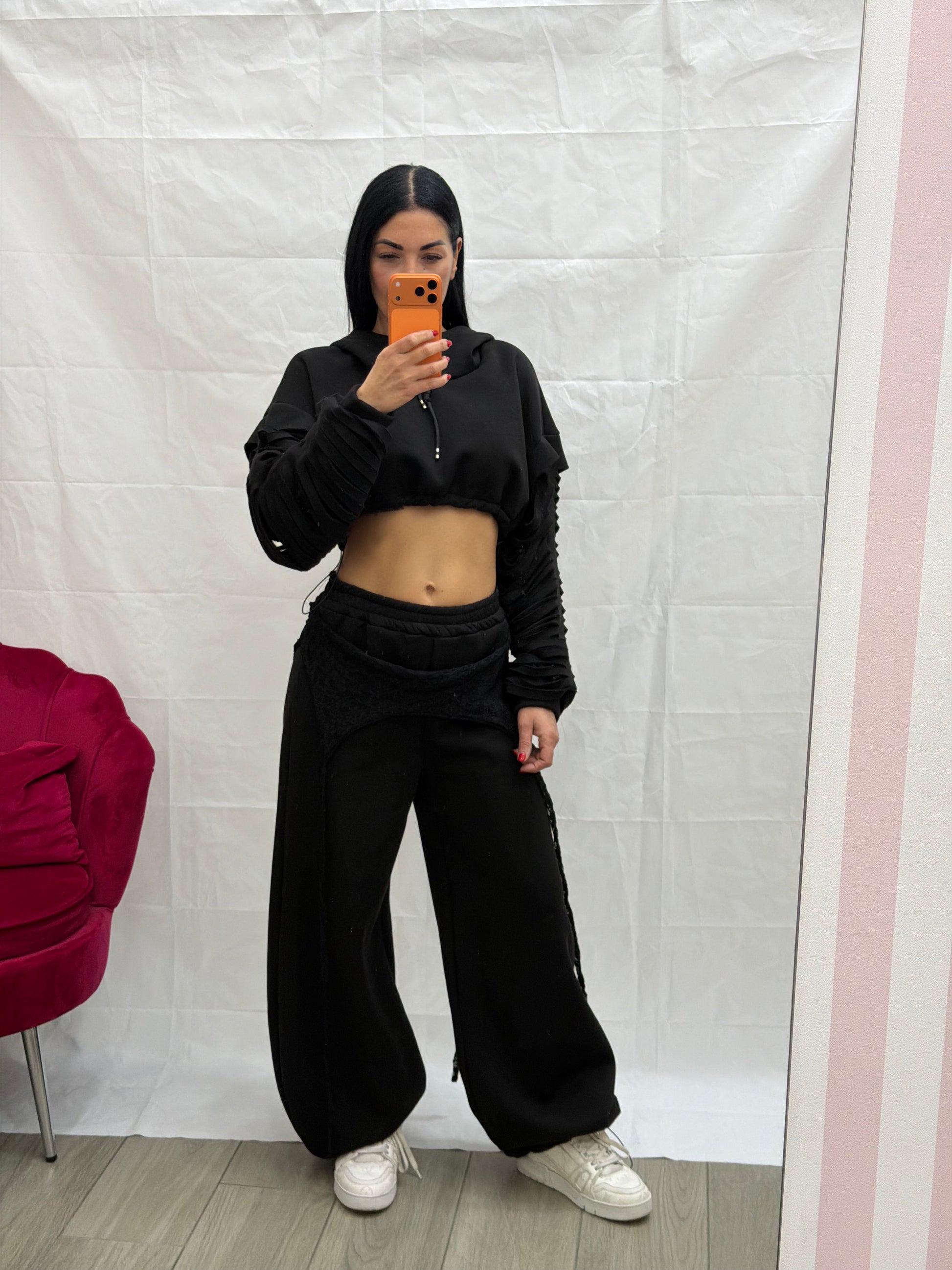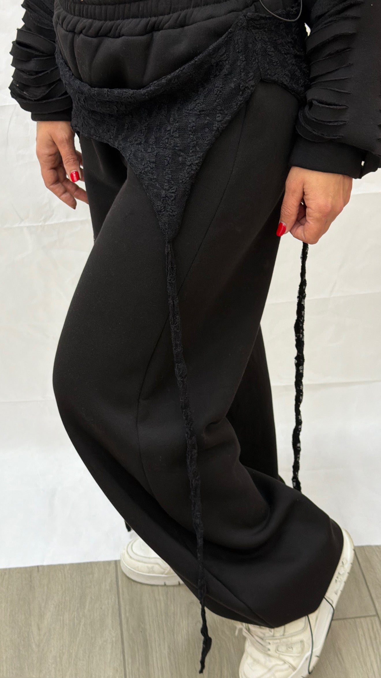 Tuta felpata con dettagli pizzo consigliata in taglia unica ma vestibilità comoda da tg XS a L